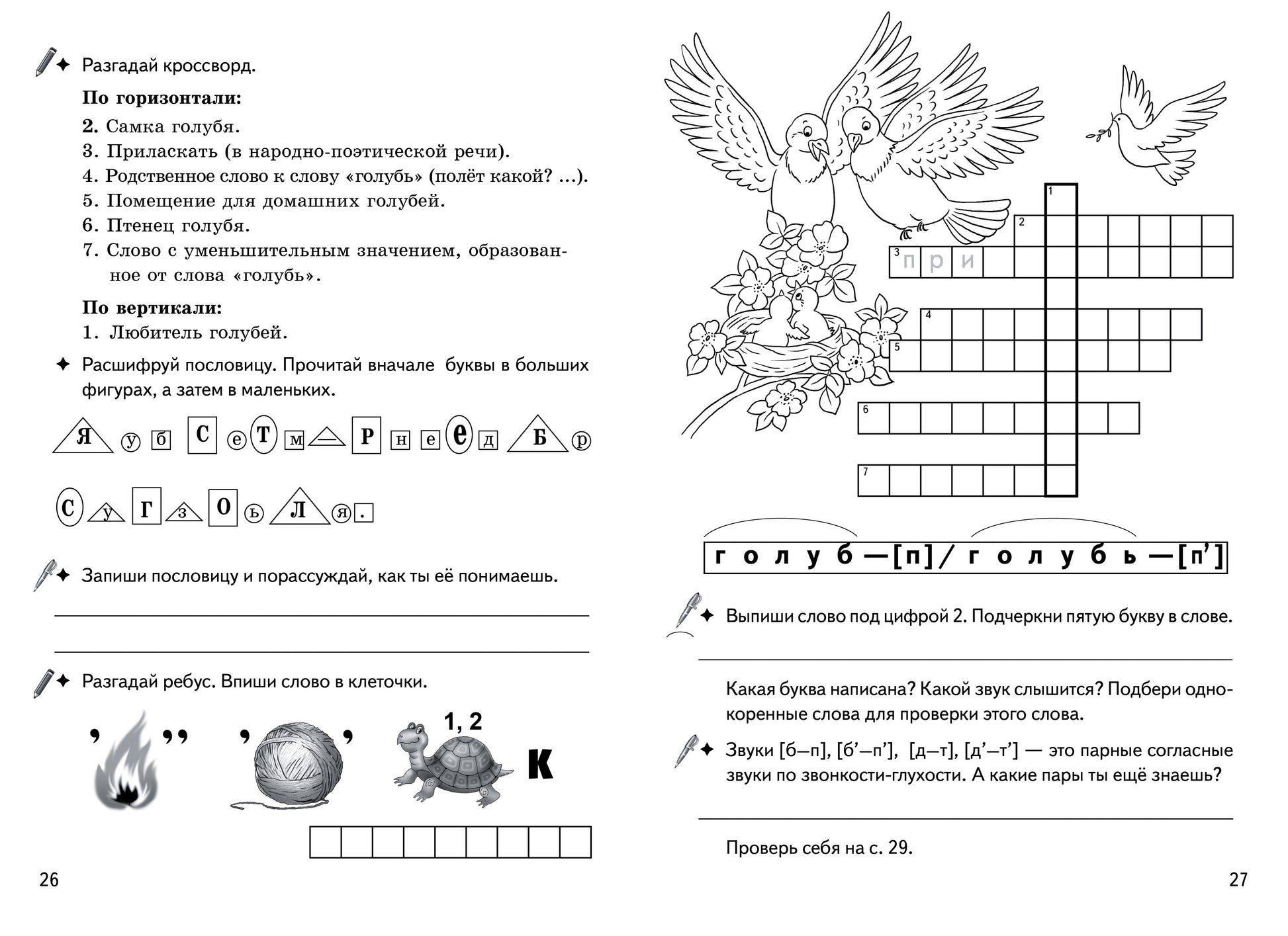 Handling time: 14 days Серия рабочих тетрадей «Игры для грамотеев» адресована детям младшего школьного возраста и содержит задания в форме кроссвордов, филвордов, ребусов, загадок и различных шифровок. Всего в тетрадях собраны задания, помогающие запомнить и использовать при письме 47 правил, изучаемых в начальной школе. Зачастую ребенок, зная назубок то или иное правило русского языка, не умеет применить его на практике и делает много ошибок. В данных тетрадях дети научатся соотносить трудные правила с конкретным текстом, овладеют грамотой, необходимой для успешного обучения в школе. Задания-игры не позволят ребенку заскучать, расширят его словарный запас, помогут полюбить родной язык. Содержимое тетрадей соответствует требованиям государственного стандарта и может быть использовано на уроках русского языка или во внеурочное время. Рабочая тетрадь «Однокоренные слова. Корень слова» открывает серию тетрадей «Игры для грамотеев», адресованную младшим школьникам. Часто дети, даже зная правило, не умеют применять его при письме. В данной тетради собраны задания-игры (кроссворды, филворды, ребусы, загадки и различные шифровки), которые помогут детям понять и научиться использовать 7 важных правил, связанных с корнем слова. Занимайтесь вместе с ребенком, и вы увидите, что в процессе игры он расширит свой словарный запас и запомнит, как правильно писать многие сложные слова.