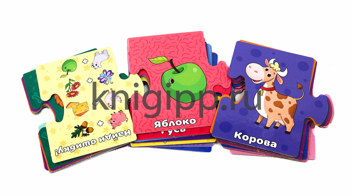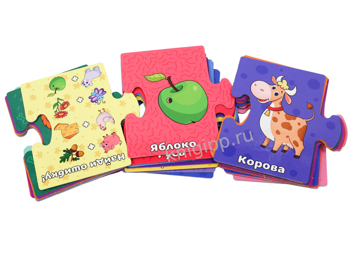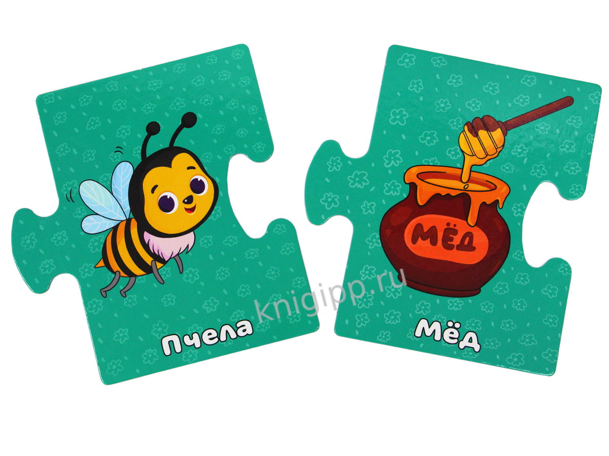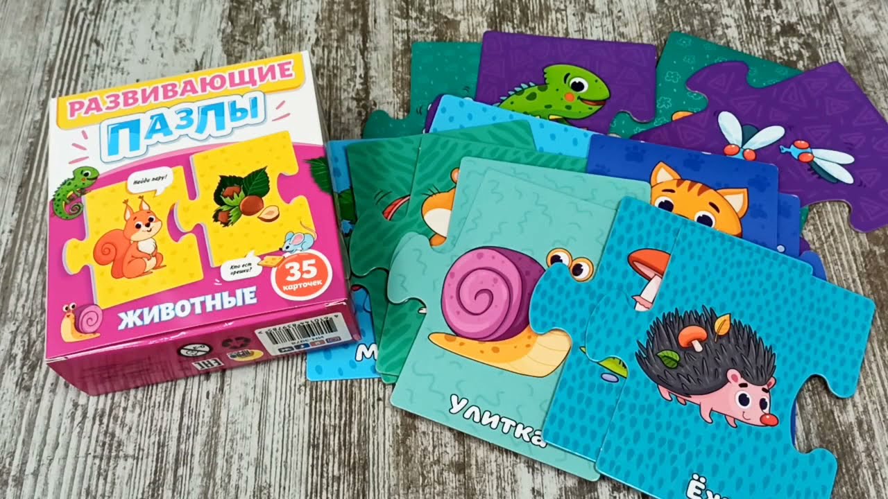 Развивающие пазлы "Животные" - это отличный способ познакомить малыша с дикими и домашними животными, а также возможность в игровой форме развить память, логическое мышление и мелкую моторику.Из крупных карточек-пазлов можно составить пары-ассоциации, например "медведь - малина", "корова - молоко", "мышь - сыр" и т.п.Карточки являются двусторонними, это делает игру увлекательнее, даёт ребёнку возможность выбора и простор для размышлений. В качестве подсказки выступает одинаковый фон карточек-пар.Каждую пару можно соединить по отдельности или же создать цепочку из карточек - у всех элементов одинаковая форма.В комплекте 35 карточек.Материал: картон, бумага мелованная.Для детей от 3 лет.