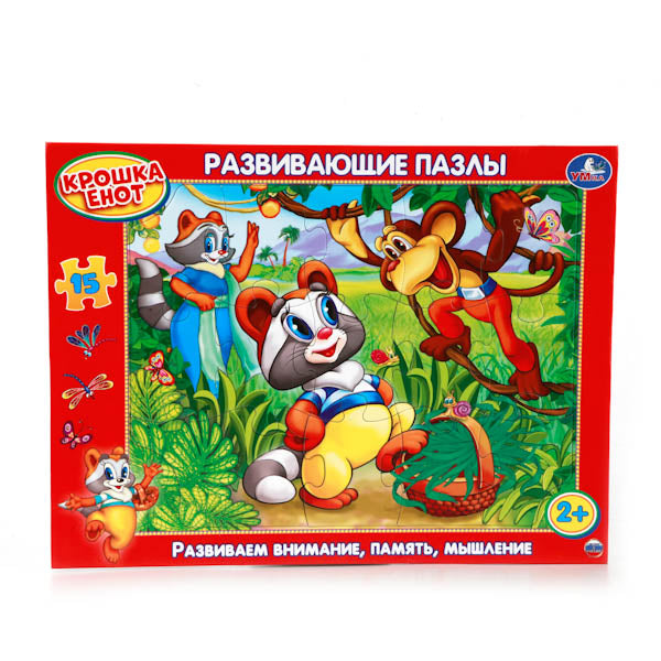 Handling time: 14 days РАЗВИВАЮЩИЕ ПАЗЛЫ В РАМКЕ "УМКА" КРОШКА ЕНОТ. 15Д. 29*22*0,3СМ в кор.50шт Развивающий пазл в рамке "Крошка Енот" состоит из 15 крупных деталей и подойдет самым маленьким деткам от 2 лет. Для того чтобы им было гораздо удобнее его собирать, имеется специальная рамка. На картинке изображены любимые герои отечественного мультфильма. Цвета пазла яркие и насыщенные. Все детали легко соединяются между собой и имеют сглаженные края, поэтому малыш не поранится. Пазл поможет развить внимание, память и образное мышление.