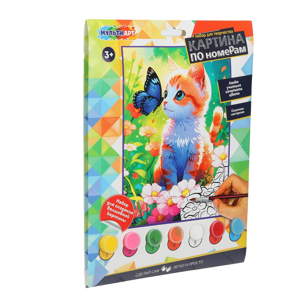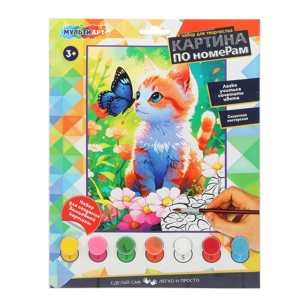 Раскраска по номерам 17х23 см котик и бабочка МУЛЬТИ АРТ в кор.50шт