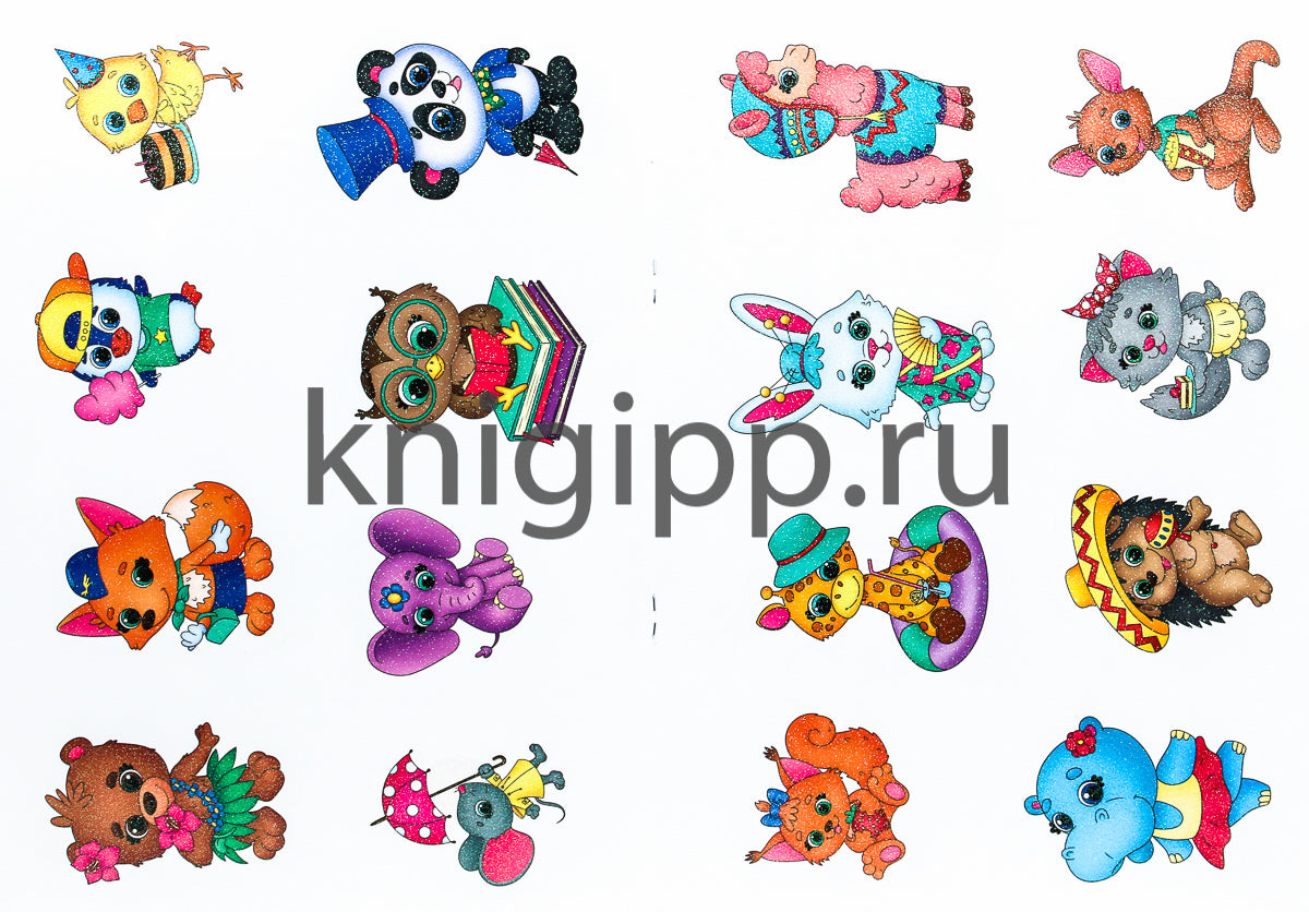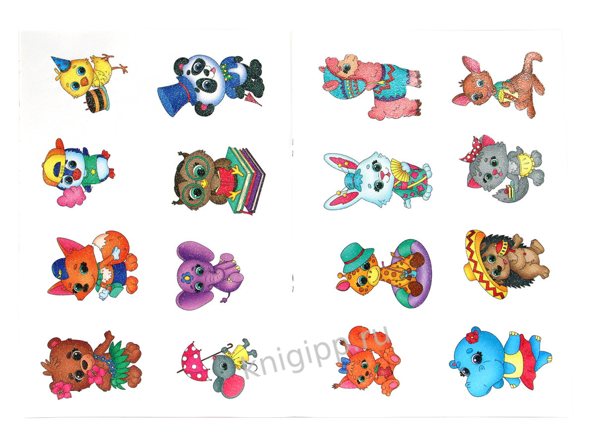 РАСКРАСКА с блестящими наклейками. МИЛЫЕ ЗВЕРЯТА
