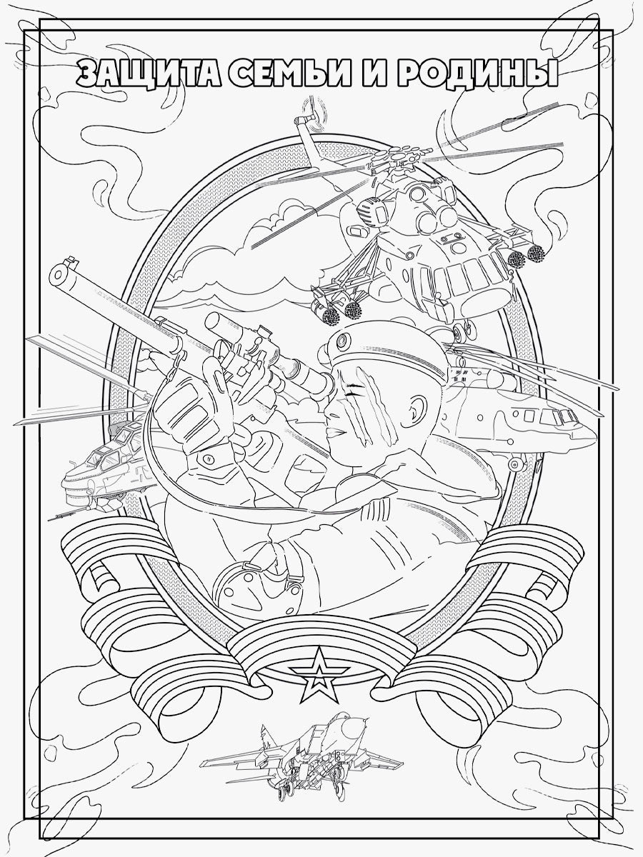 Воспитание патриотизма и мужества в подрастающем поколении — задача, стоящая перед родителями и педагогами. В процессе рисования в этой раскраске дети познакомятся с современной техникой и сценами из военных учений Российской армии.