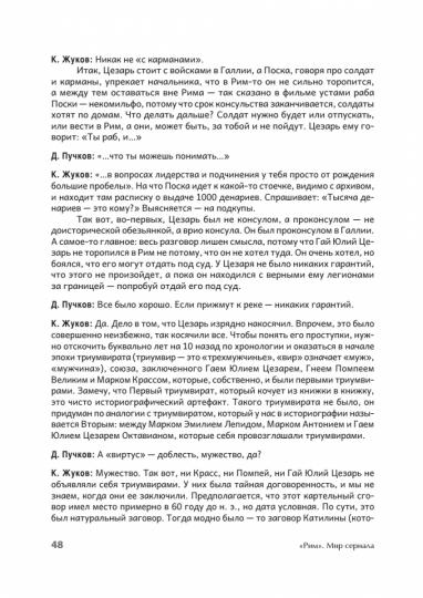Handling time: 14 days «Рим» - один из самых масштабных и дорогих сериалов в истории. Он объединил в себе беспрецедентное внимание к деталям, быту и культуре изображаемого мира, захватывающие интриги и ярких персонажей. Увлекательный рассказ охватывает наиболее важные эпизоды римской истории - войну Цезаря с Помпеем, правление Цезаря, противостояние Марка Антония и Октавиана. Что же интересного и нового может узнать зритель об истории Римской республики, посмотрев этот сериал? Разбираются известный историк-медиевист Клим Жуков и Дмитрий GOBLIN Пучков. «Путеводитель по миру сериала "Рим" охватывает античную историю с 52 года до нашей эры и далее. Все, что смогло объять художественное полотно, постарались объять и мы: политическую историю, особенности экономики, военное дело, язык, имена, летосчисление, архитектуру. Диалог оказался ужасно увлекательным. Что может быть лучше, чем следить за "исторической историей", поправляя "историю киношную"?» Клим Жуков, Дмитрий GOBLIN Пучков