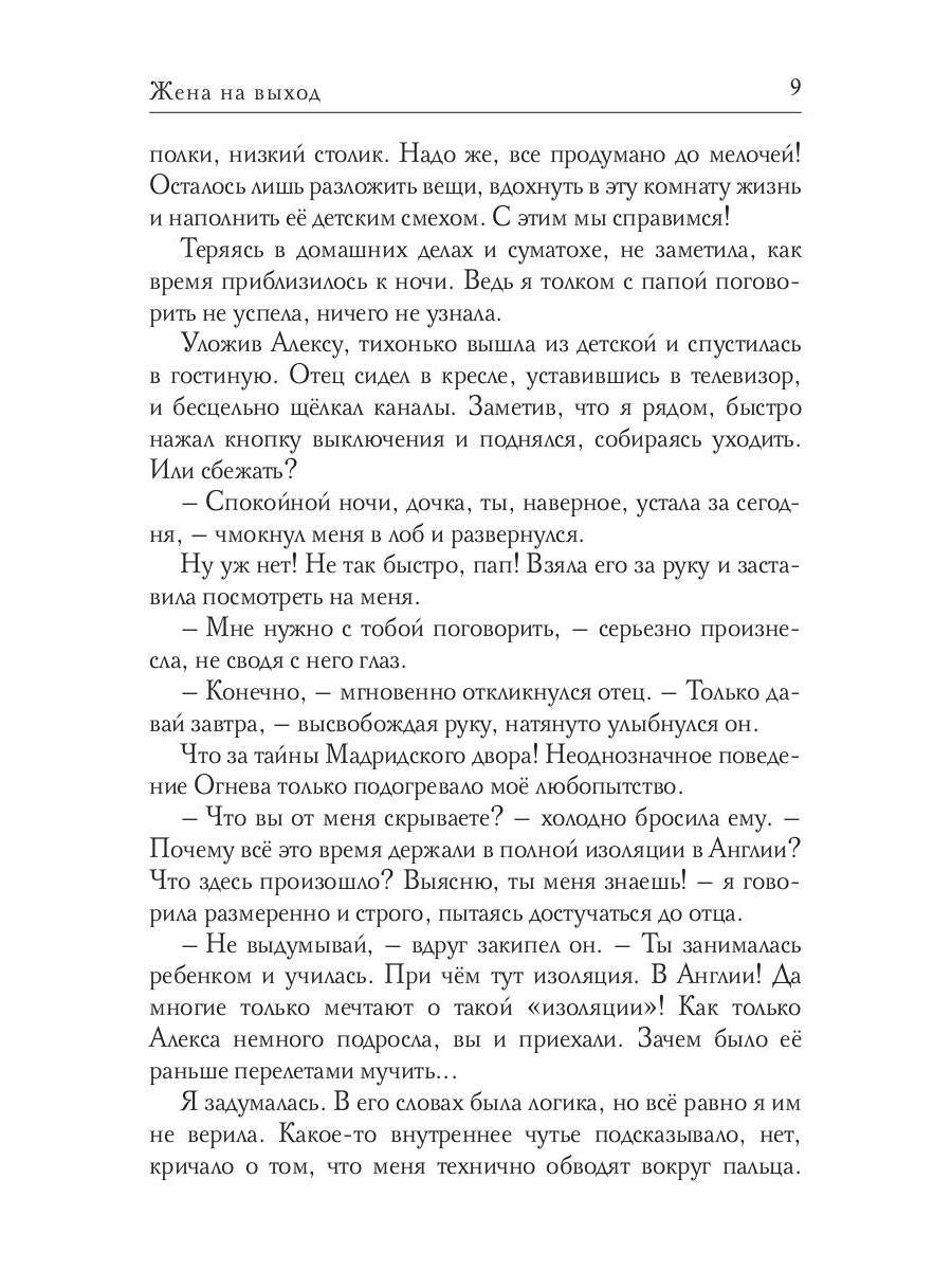 Handling time: 19 days Автор: Лесневская ВероНика, «Жена на выход»: Я пыталась забыть прошлое, как страшный сон. Но мужчина, который беспощадно растоптал наши чувства, вновь вернулся в мою жизнь.
