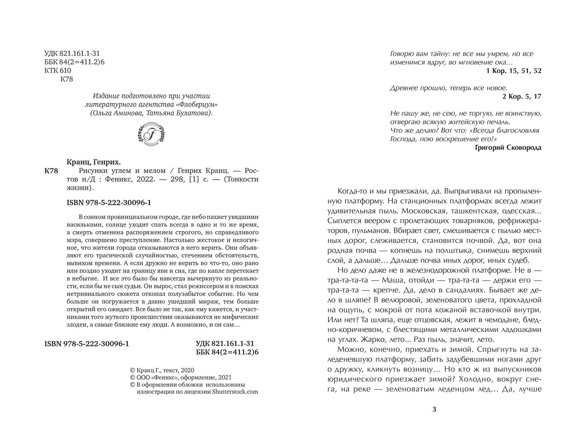 В сонном провинциальном городе, где небо пахнет увядшими васильками, солнце уходит спать всегда в одно и то же время, а смерть отменена распоряжением строгого, но справедливого мэра, совершено преступление. Настолько жестокое и нелогичное, что жители города отказываются в него верить. Они объявляют его трагической случайностью, стечением обстоятельств, вывихом времени. А если дружно не верить во что-то, оно рано или поздно уходит на границу яви и сна, где по капле перетекает в небытие. И все это было бы навсегда вычеркнуто из реальности, если бы не сын судьи. Он вырос, стал режиссером и в поисках нетривиального сюжета откопал полузабытое событие. Но чем больше он погружается в давно ушедший мираж, тем больше открытий его ожидает. Все было не так, как ему кажется, и участниками того жуткого происшествия оказываются не мифические злодеи, а самые близкие ему люди. А возможно, и он сам...Прекрасный образец современной отечественной прозы. Четыре причины купить 1Книга, которая дарит особую атмосферу игры света с тенью, прошлого с будущим, тайн и разгадок. 2Глубокая проза о любви. 3Генрих Кранц — уникальный писатель: литературный талант, артистизм, душевная чуткость соединились с богатым жизненным опытом. 4Произведения Генриха Кранца входили в премиальные списки: шорт-лист Волошинской премии (2014 г.), лонг-лист премии И. Анненского (2019 г.).