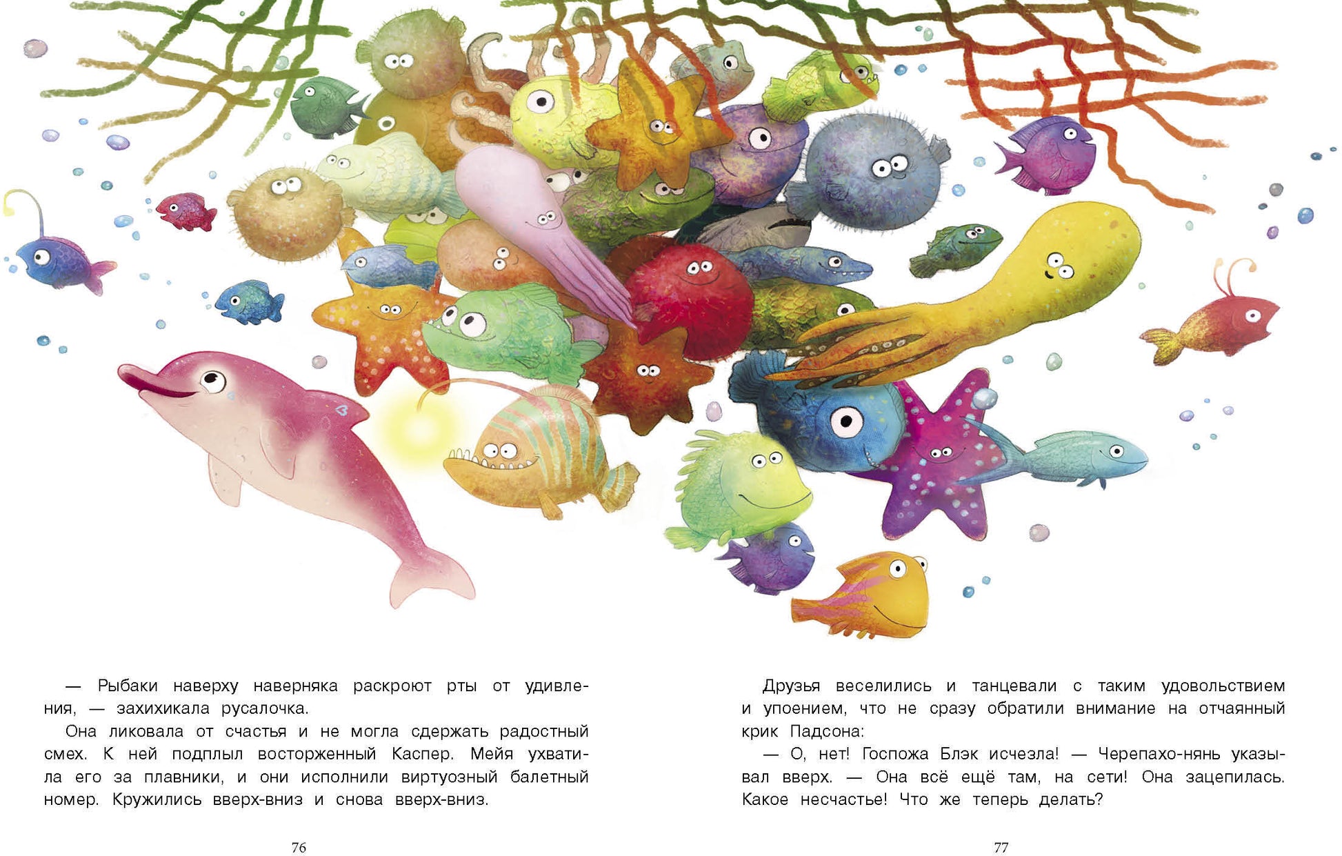 Почему черепахо-нянь Падсон такой задумчивый, а маленький тюлень Плюхля грустный? И что это за ужасные звуки? Мейя обязательно должна это выяснить! Но увиденное приведёт малышку в ужас: рыбацкие сети захватили морских обитателей.. Русалочка не оставит жителей Тайндорфа в беде, ведь только у неё и её звёздочки Лиль есть волшебные силы. Крабики-ракушки!Это очень опасно, но ни уговоры Падсона, ни строгая учительница госпожа Блэк, ни даже банда акул не смогут остановить отважную русалочку из Зелёного моря!Для детей младшего и среднего школьного возраста. Пять причин купить 1Книги шведского писателя Эрика Оле Линдстрема пользуются большим успехом у детей и были многократно переведены на многие языки мира. 2Историю о русалочке Мейе Эрик Оле Линдстрем написал специально для своих детей. Наполненная большой любовью, эта книга поможет совершить удивительное путешествие в невероятный подводный мир. 3Замечательные иллюстрации молодой и талантливой художницы Вибке Раурс наполнены юмором и доброй иронией. С помощью забавных контрастов художница очень точно передает характер своих героев, что усиливает образное восприятие детьми живого мира. 4Иллюстрации Вибке — это не просто забавные и очень милые картинки. Каждый ее рисунок — это маленький рассказ о том, кто на этом рисунке изображен. Очень метко и остроумно показаны характеры всех героев этой удивительной истории. 5Великолепное полиграфическое исполнение на плотной высококачественной бумаге.