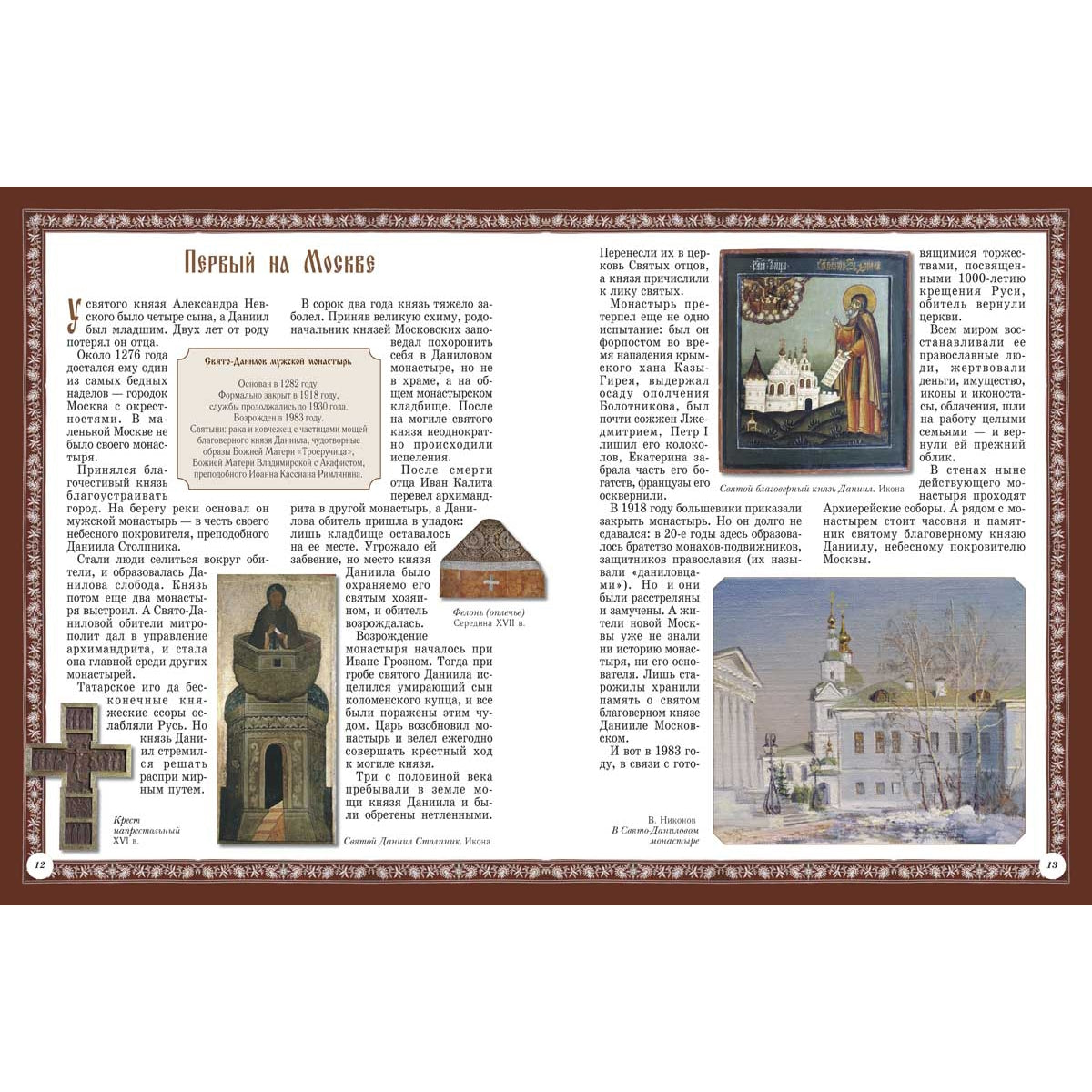В книге доступно и интересно рассказано о русских монастырях - Киево-Печерской и Троице-Сергиевой лавре, древних монастырях Москвы - Свято-Даниловом и Сретенском, Валаамском, Кирилло-Белозерском, Саввино-Сторожевском, Соловецком, Псково-Печерском, Новоиерусалимском, Оптиной пустыни, Серафимо-Дивеевском монастыре и Марфо-Мариинской обители. Монахи искали уединенных мест, чтобы молиться Богу, но их праведная жизнь притягивала к себе других людей, которые селились рядом. Монастыри росли, богатели, часто превращались в могучие крепости, которые на раз противостояли захватчикам, нападавшим на Русскую землю, были местами заключения знатных узников, становились целью паломничества и для простого люда, и для великих князей и царей. В истории русских монастырей отразилась история России. Книга "Русские монастыри" выходит в рамках проекта "История России". Читатели узнают об основании крупнейших русских обителей, о святых подвижниках, которые прославили Русскую церковь, о драматических событиях русской истории, связанных с монастырями. Книга будет интересна детям 9-12 лет - ученикам среднего школьного возраста, поможет им ярче представить себе русскую историю и православную культуру.
