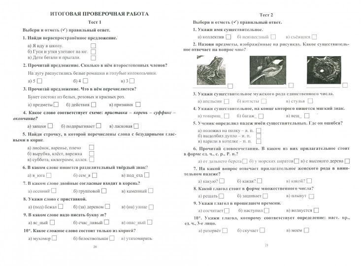 Русский язык 3-4 кл Итог.контр.зад. "Школа России"