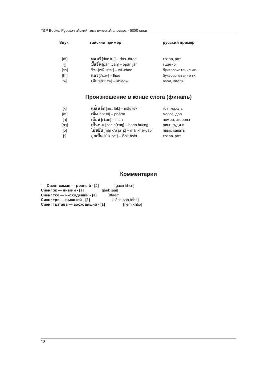 Handling time: 14 days Автор: Таранов Андрей, «Русско-тайский тематический словарь — 5000 слов»: Данная книга содержит более 5000 наиболее употребительных слов, организованных по тематическому принципу. 155 тем словаря охватывают основные сферы повседневной деятельности человека, бизнеса, науки, культуры. Словарь предназначен для активной работы со словарным запасом, для расширения и систематизации знаний иностранной лексики. Издание будет полезно как при самостоятельном изучении языка, так и в качестве дополнительного пособия к основному курсу. Пособие снабжено удобной транскрипцией, которая предназначена для использования в случае сомнений в произношении того или иного слова.