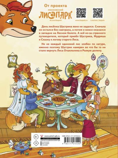 День лисёнка Шустрика явно не задался. Сначала он остался без завтрака, а потом и вовсе оказался в западне на Лесном болоте. А всё из-за странного путеводителя, который привёл Шустрика, Мудряша и Сказку к логову старого Лиса. Но не каждый одинокий лис злобен по натуре, именно поэтому Шустрик намерен во что бы то ни стало вернуть Лиса Отшельника в Рыжую долину.Для дошкольного возраста, текст читают взрослые.Добро пожаловать в Рыжую долину! Вас ждут в гости дружные пушистые и пернатые жители с добрыми сказками и древними легендами.Эта история о том, как важна в жизни семья, любовь и поддержка, как прекрасна дружба, и как важно помогать друг другу во что бы то ни стало!Эта история для малышей и их родителей. Она поможет через игру обсудить многие важные вопросы с ребёнком и, конечно, приятно провести время вместе.Красочная книга-картинка с прекрасными иллюстрациями Валерии Белобородовой — отличный иллюстративный материал для развития внимания и памяти ребёнка. Тщательная прорисовка и интересная детализация позволит родителям поиграть с ребёнком прямо на разворотах этой книги.Отрой книгу — и окунёшься в мир, где каждое, даже самое крохотное существо создаёт уют и радуется жизни. Попробуй разглядеть всех!Книга рассчитана на чтение взрослыми детям.