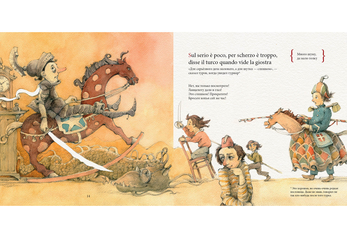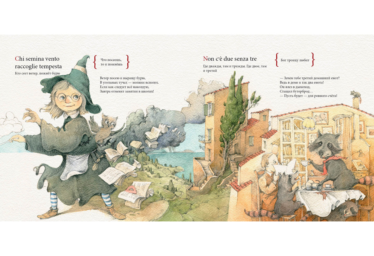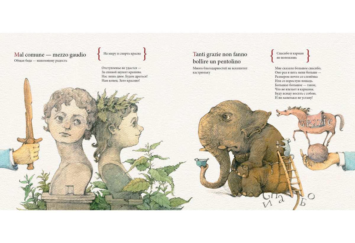 Пословицы украшают нашу речь, делают её ярче и выразительнее. Но многие из них давно забыты, а смысл некоторых - мы и вовсе уже не можем разгадать. А ведь узнавать что-то новое, пусть даже и хорошо забытое старое, - это не только полезно, но и очень интересно!В этой книге живут 34 пары итальянских и русских пословиц, собранные Марией Гойхман. Иногда они спорят между собой, иногда вполне мирно дополняют друг друга. Короткие и забавные стихи насыщены итальянским колоритом, увлекательны и бесспорно понравятся юным читателям.Иллюстрации к книге выполнены художником Валерием Козловым.Об иллюстраторе:Валерий Козлов - художник-иллюстратор. Сотрудничал с издательствами "Розовый жираф", "Росмэн". Финалист конкурса "Новая детская книга" (2015 г.) В издательстве "Нигма" с иллюстрациями Валерия Козлова вышла книга "Папашина азбука"