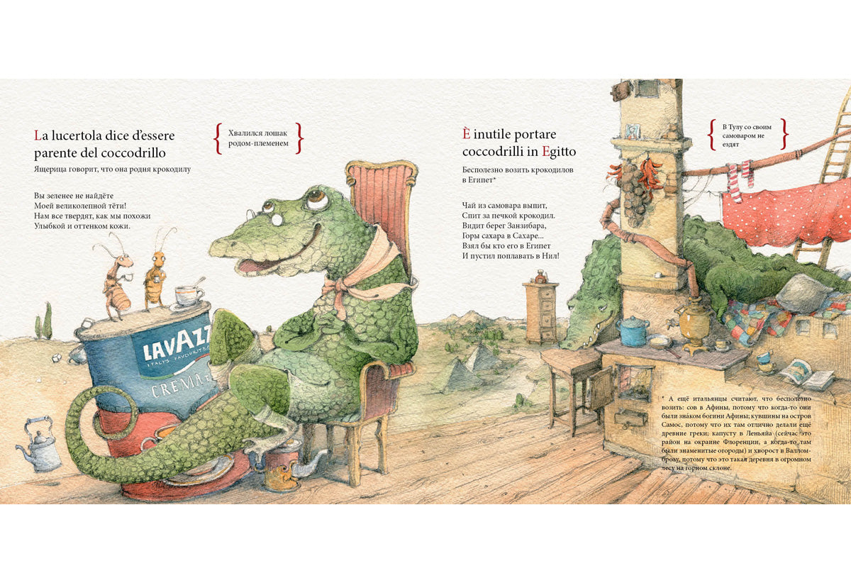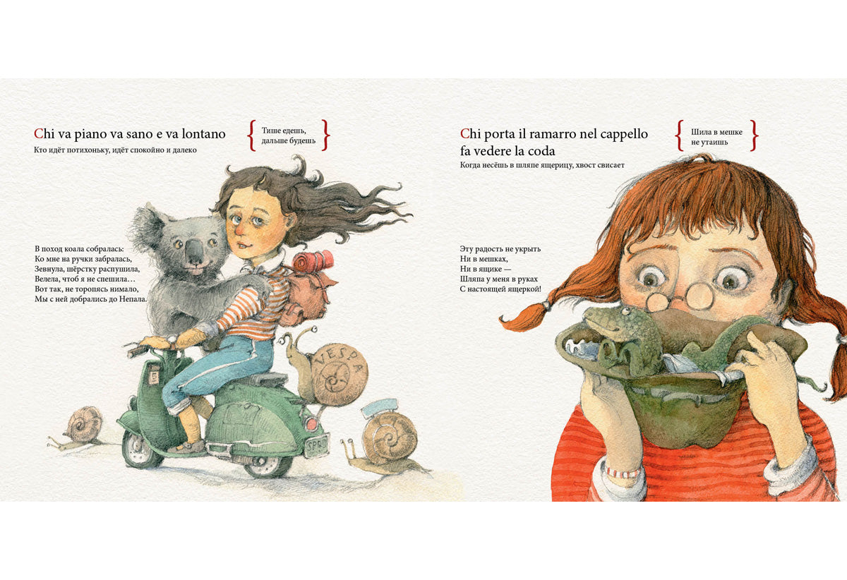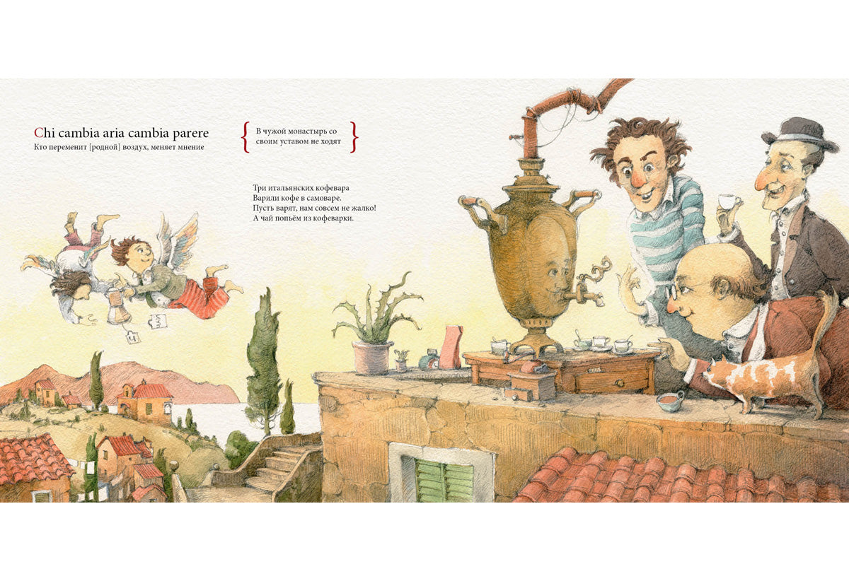 Самовар и кофеварка. 34 пары итальянских и русских пословиц : [сб. пословиц] / пер. с итал., сост. и предисл. М. В. Гойхман ; ил. В. В. Козлова. — М. : Нигма, 2018. — 48 с. : ил. — (Слово за слово).