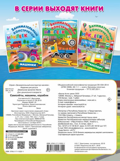 "Самолёты, машины, корабли" - прекрасно иллюстрированная книга с наклейками, которая познакомит любознательных малышей с самыми разнообразными видами транспорта. Малыш узнает, из каких частей состоит автомобиль, корабль, вертолёт или самолёт, и сможет "собрать" их из необычных наклеек.Для дошкольного возраста.Составитель: В.Г. Дмитриева.