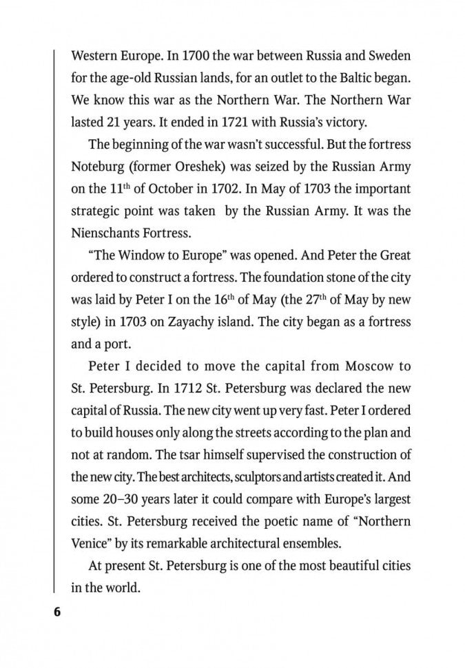 Предлагаемая книга является практическим пособием для изучения достопримечательностей Санкт-Петербурга. Каждый раздел книги состоит из статьи об одной из достопримечательностей города, словаря и разнообразных упражнений, предназначенных для лучшего усвоения предложенного материала. Книга рассчитана на учащихся средних классов общеобразовательных и специальных школ. Может быть использована как факультативный курс по теме "Санкт-Петербург". Данная книга - первая в серии книг под общим названием "Санкт-Петербург. Тексты и упражнения". Дополнительно подготовлено аудио с носителями языка. Аудиоприложение приобретается отдельно от пособия. english / в школу / английский для детей / пособия по изучению иностранных языков / учебник по английскому языку / упражнения английский / английский язык для школьников / 5 класс / 6 класс / 7 класс / 8 класс / 9 класс / английский с упражнениями / сборник упражнений по английскому языку / грамматика английский язык / учебник английский язык / сборник по английскому языку / методическое пособие / английский на отлично / учим английский / чтение на английском / страноведение