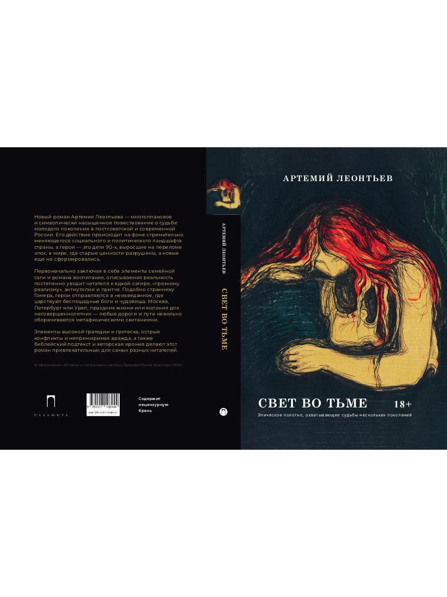 Handling time: 19 days Автор: Леонтьев А., «Свет во Тьме: роман»: Новый роман Артемия Леонтьева — многоплановое и символически насыщенное повествование о судьбе молодого поколения в постсоветской и современной России. Его действие происходит на фоне стремительно меняющегося социального и политического ландшафта страны, а герои — это дети 90-х, выросшие на переломе эпох, в мире, где старые ценности разрушены, а новые еще не сформировались. Первоначально заключая в себе элементы семейной саги и романа воспитания, описываемая реальность постепенно уводит читателя к едкой сатире, «грязному реализму», антиутопии и притче. Подобно страннику Гомера, герои отправляются в неизведанное, где царствуют беспощадные боги и чудовища. Москва, Петербург или Урал, праздник жизни или колония для несовершеннолетних — любые дороги и пути невольно оборачиваются метафизическими скитаниями. Элементы высокой трагедии и гротеска, острые конфликты и непримиримая вражда, а также библейский подтекст и авторская ирония делают этот роман привлекательным для самых разных читателей.