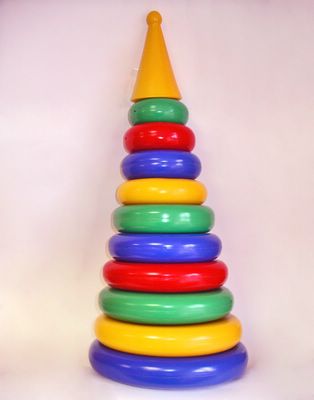 Handling time: 24 days Пирамида "Гигант" - одна из самых больших в семействе пирамидок. Она состоит из десяти колец, держателя и большого шарика. Цвета колец - классические: красный, жёлтый, зелёный и синий. Цель игры: научить ребёнка сравнивать предметы по форме, цвету и размеру. На стержень поочерёдно надеваются кольца - от большого до маленького. Замыкает пирамидку большой конус. Пирамида - одна из самых главных развивающих игр для малышей в возрасте до 3-х лет. Размер пирамидки в собранном виде (ДхШхВ) составляет 26х26х53 см. Материал изготовления: пластмасса. Рекомендованный возраст: 1 год +