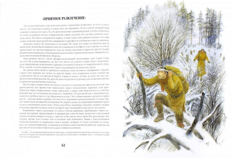 Книга рассказывает о жизни удивительного канадского писателя с удивительным индейским именем Серая сова. Он всю жизнь прожил на природе, в диком лесу, дружил с борами, много о них узнал и написал книгу. Её перевёл на русский язык другой знаток природы - Михаил Михайлович Пришвин. Это очень интересная книга для детей младшего и среднего школьного возраста.
