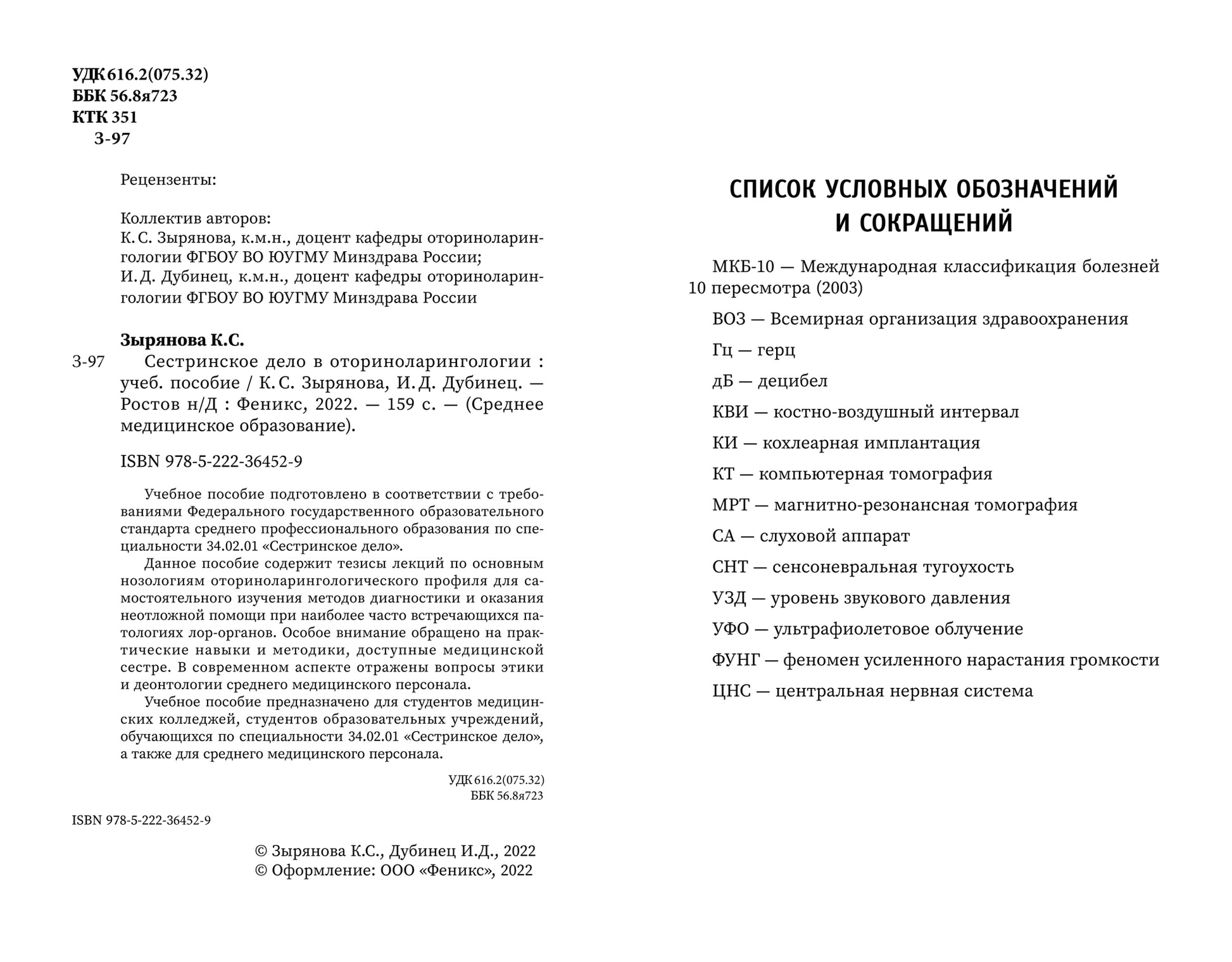Данное пособие содержит тезисы лекций по основным нозологиям оториноларингологического профиля для самостоятельного изучения методов диагностики и оказания неотложной помощи при наиболее часто встречающихся патологиях лор-органов. Особое внимание обращено на практические навыки и методики, доступные медицинской сестре. В современном аспекте отражены вопросы этики и деонтологии среднего медицинского персонала.