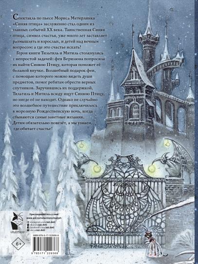 Handling time: 14 days Морис Метерлинк — бельгийский писатель, философ, лауреат Нобелевской премии по литературе. В 1905 году написал пьесу-притчу «Синяя птица», ставшую одним из главных событий XX века: её ставили на сценах театров, снимали фильмы, записывали радиоспектакли. Гражданская жена писателя Жоржетта Леблан сделала из пьесы вариант сказки для детей. Наполненная добротой и верой, сказка о Синей птице, символе счастья и надежд, по сей день продолжает трогать сердца людей и завоёвывать поклонников по всему миру. В Рождественскую ночь в дверь брата и сестры Тильтиля и Митиль постучалась фея Берилюна. Её внучка больна, и поможет ей только Синяя Птица. Но где её искать? Выполнить это непростое задание и предстоит ребятам. На помощь им приходят ожившие Хлеб, Сахар, Огонь и Вода, а ещё верный пёс Тило и хитрая кошка Тилетта. Героям предстоит нелёгкий путь: они заглянут в чертоги Ночи, наведаются в Страну Воспоминаний, побывают в Царстве Будущего. Однако Синей Птицы нигде нет. Где же ты прячешься, Синяя Птица? Пересказ Леонида Яхнина. Иллюстрации Максима Митрофанова. Для среднего школьного возраста.