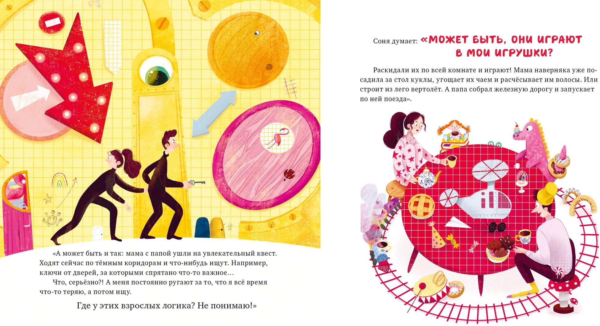 Сказка на ночь. Что делают мама и папа, когда я сплю? Серия книг "Сказка на ночь" поможет создать для вас и вашего малыша уютный ритуал подготовки ко сну. Маленькая Соня уверена, что, когда она спит, родители смотрят мультики, играют в её игрушки, наряжаются и бегают по квартире. Но что же они делают на самом деле? Соня просто обязана узнать! Устройте уютный вечер с малышом, читая эту весёлую книжку. Смейтесь, фантазируйте и наслаждайтесь временем, проведённым друг с другом.