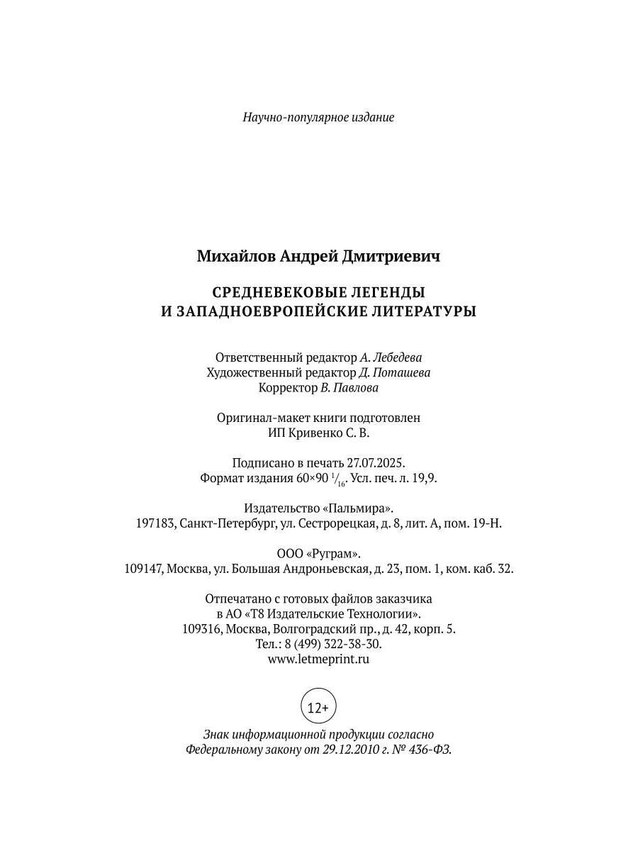 Handling time: 14 days Автор: Михайлов Андрей Д., «Средневековые легенды и западноевропейские литературы»: В книге собраны исследования выдающегося филолога А. Д. Михайлова, посвященные ключевым легендам Средневековья и их трансформации в западноевропейской литературе. Автор прослеживает сложные пути перехода от мифа к литературному канону, демонстрируя, как легенды — от кельтских саг до христианских преданий — определяли культурный ландшафт эпохи. Каждая статья раскрывает механизмы формирования этих нарративов, их роль в социальном контексте и дальнейшее влияние на литературу Возрождения и Нового времени. Михайлов сочетает глубину филологического анализа с типологическим подходом: он исследует не только тексты, но и их связь с историческими реалиями, фольклорными истоками, а также диалог между куртуазной традицией и городской культурой. Особое внимание уделено рецепции легенд — от рыцарских романов Кретьена де Труа до их переосмысления в позднесредневековой прозе. Книга адресована специалистам — историкам и литературоведам, а также всем, кто интересуется генезисом европейской культуры.