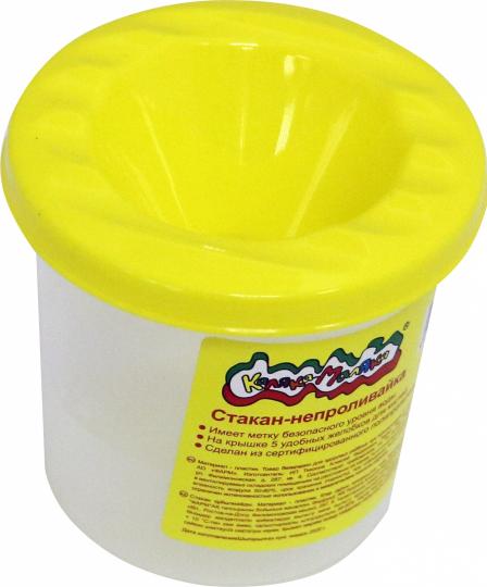 Стакан-непроливайка сохранит рабочее место ребенка в чистоте. Позволяет не расплескать воду из стакана даже при его опрокидывании (при наполнении стакана водой не выше специальной отметки).Имеет удобную, плотную крышку солнечного ярко-желтого цвета. Крышка приспособлена для удобного расположения на ней кисточек.Объем: 200 мл.Материал: пластик.Изготовлено в России.