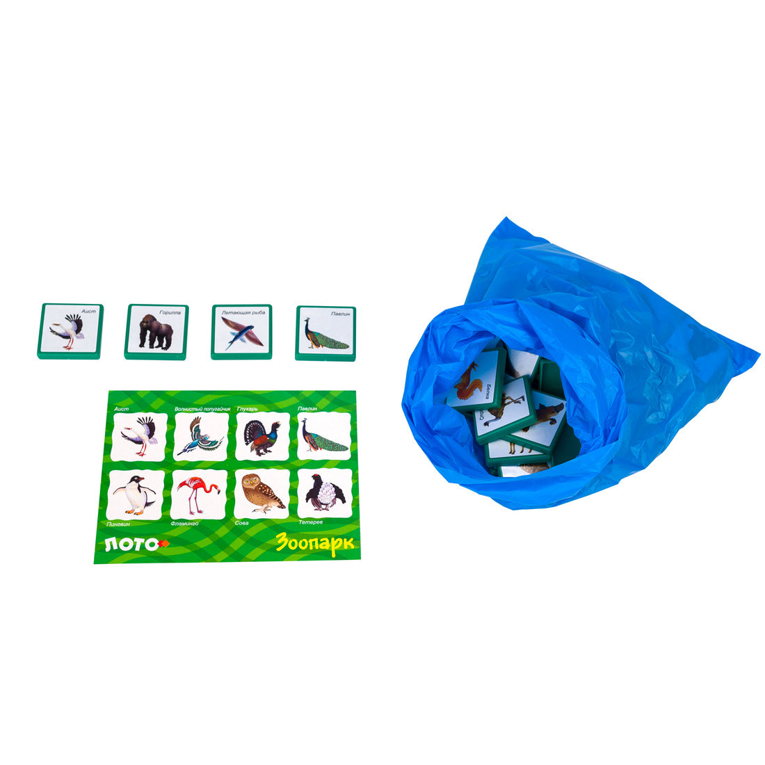 Handling time: 19 days Лото "Зоопарк" знакомит с разными животными. Правила игры схожи с классическим лото, но вместо бочонков с цифрами в комплект входят карточки с картинками.Что полезного в игре?Игра позволяет моделировать различные игровые ситуации. В процессе игры развивается логическое мышление, наблюдательность, внимание, память, мелкая моторика.Состав игры:- карточки (6 шт.);- фишки (48 шт.);- пакет для хранения (1 шт.);- правила игры (1 шт.).В игре может принимать участие от 2 до 6 участников.Игра подходит для детей от 3 лет.Сделано в России.