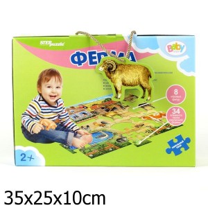 Handling time: 24 days Напольный пазл "Ферма" -- увлекательная и познавательная игра для малышей от двух лет.Напольные пазлы способствуют развитию:- внимания;- мелкой моторики;- сенсорных навыков;- ассоциативного мышления.В набор входят 34 элемента пазла различной формы и 8 игровых фигур.Размер одной собранной картинки составляет 96 х 68 см. Материал изготовления: высококачественный картон. Рекомендованный возраст: 2 года +