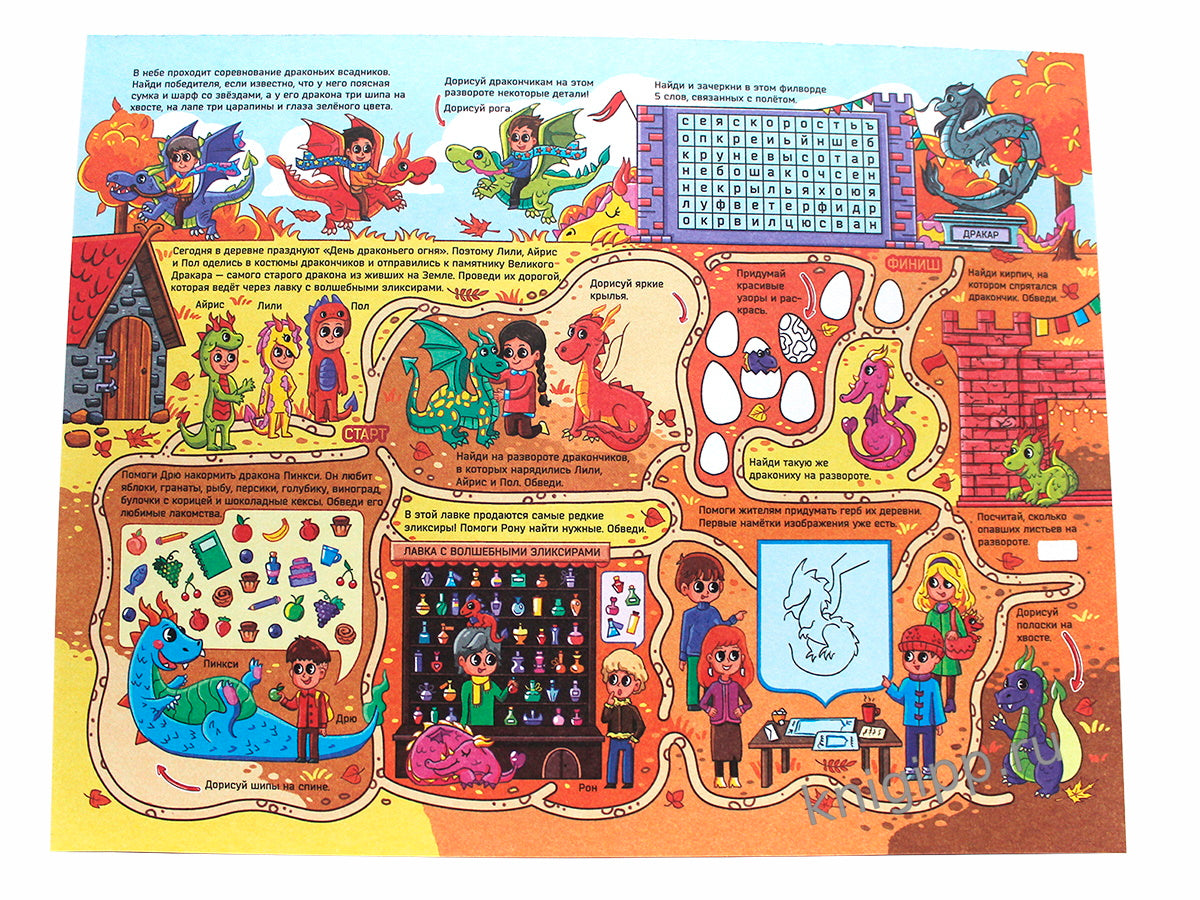 Перед вами книга игр в Макси-формате! Иллюстрации в каждой книге представляют из себя детализированные сюжетные картинки, выполненные в едином стиле. Оригинальные задания, раскраски, головоломки, задачки на логику — это и многое другое ждёт вас на страницах Супербольшой книги игр. В блоке отрывные листы — это сделано для того, чтобы можно было раздать детям по листику и, таким образом, занять сразу нескольких детей, например, на празднике. Благодаря большому формату задания на листе можно выполнять и вдвоём. А картонная подложка позволит рисовать в книге, даже когда рядом нет твёрдой поверхности. Ответы на задания можно найти, наведя камеру смартфона на QR-код, расположенный на заднике книги.