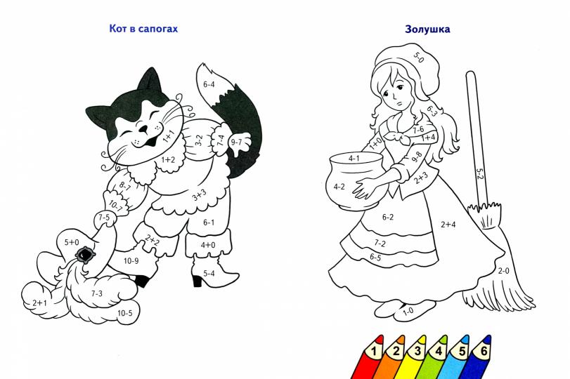 Считаем и раскрашиваем. Раскраска. Сказочные герои.