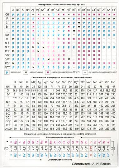 Handling time: 19 days Таблица Менделеева. Растворимость солей.Формат: А4.Составитель: Волков А. И.