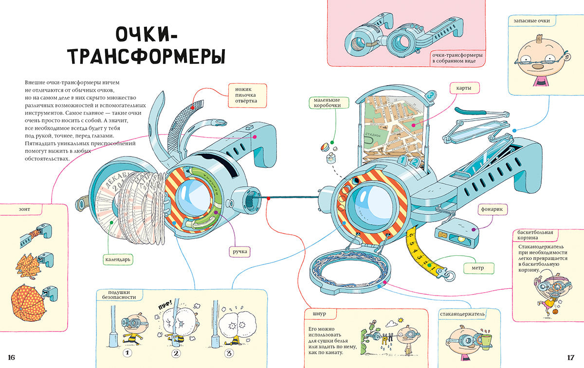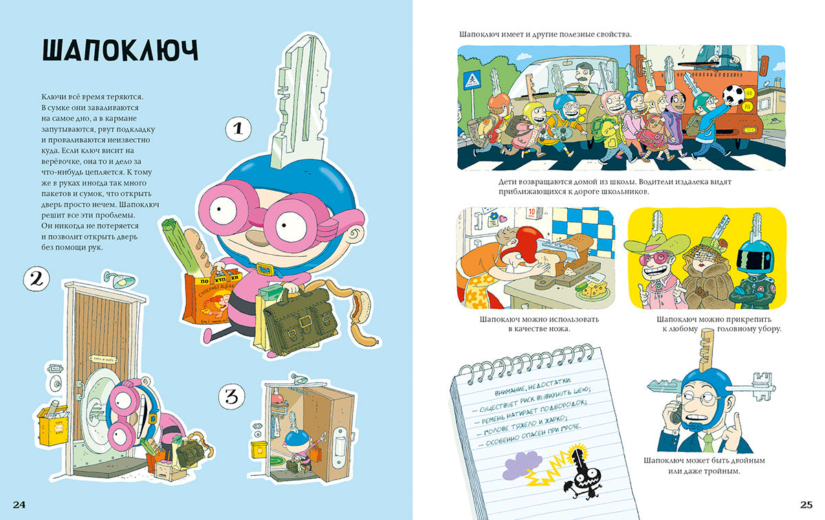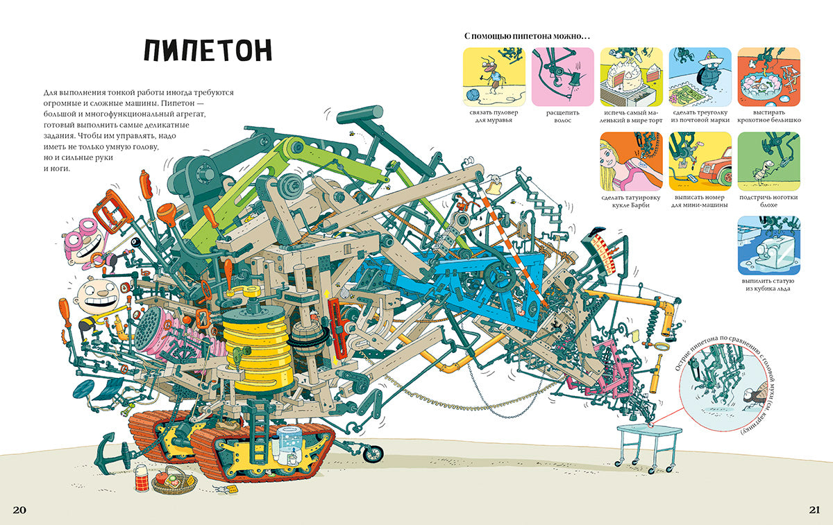 Братья Тату и Пату — неутомимые изобретатели. Они приехали из далёкой страны Чудляндии, где всё устроено совсем по-другому. Тату и Пату изучают разные предметы и явления и хотят сделать мир чуточку лучше. Они придумали 14 устройств, которые, несомненно, пригодятся каждому ребёнку! К удобным изобретениям быстро привыкаешь — осторожнее, вдруг вы потом не сможете заходить в комнату без букопугателя или просыпаться без будильно-кормильно-одевального аппарата? Хотите узнать, как они устроены? Скорее открывайте книгу и изучайте! Перевод: Сидоровой Анны Петровны