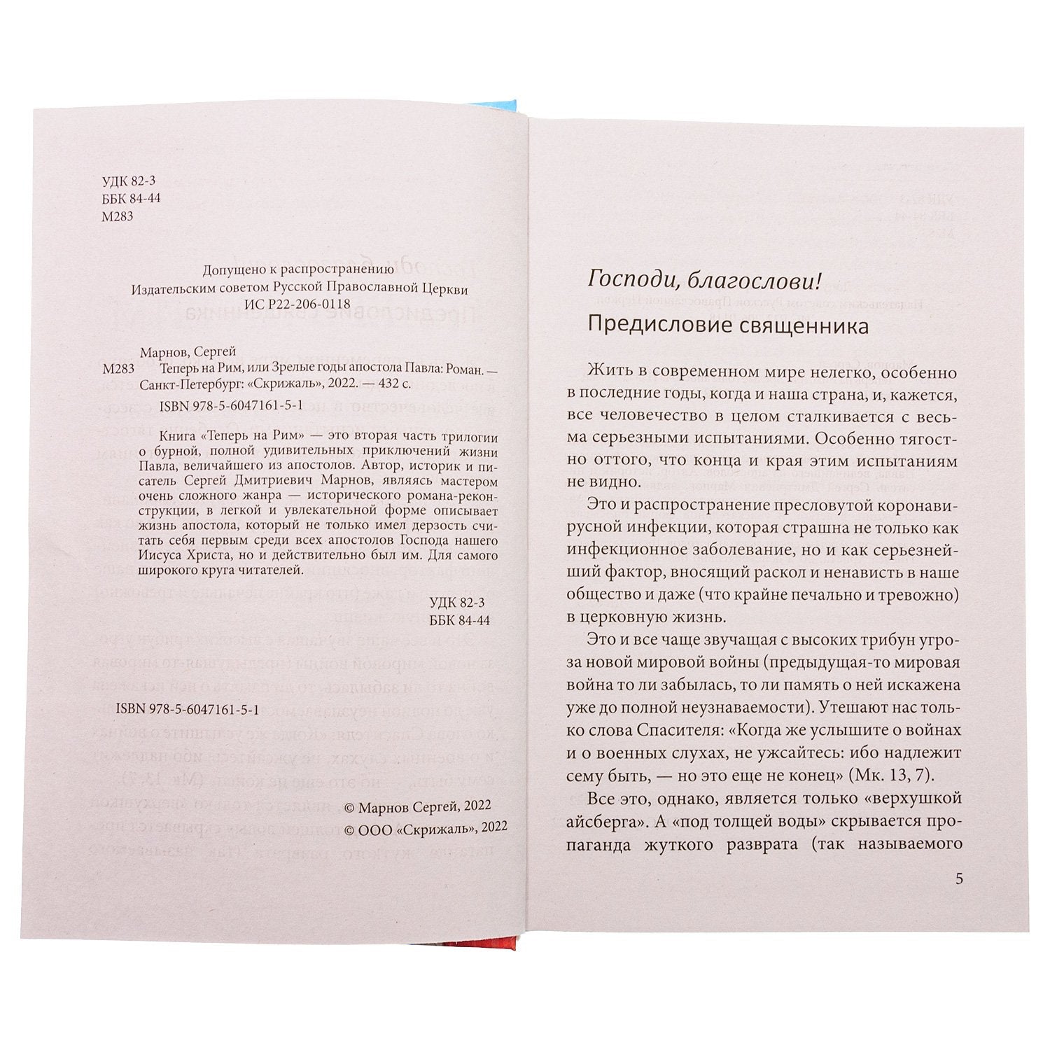 Handling time: 19 days Книга «Теперь на Рим» является второй частью трилогии о бурной, полной удивительных приключений жизни Павла, величайшего из апостолов. Автор, историк и писатель Сергей Дмитриевич Марнов, являясь мастером очень сложного жанра — исторического романа-реконструкции, в легкой и увлекательной форме описывает жизнь апостола, который не только имел дерзость считать себя первым среди всех апостолов Господа нашего Иисуса Христа, но и действительно был им. Издание предназначено для самого широкого круга читателей.