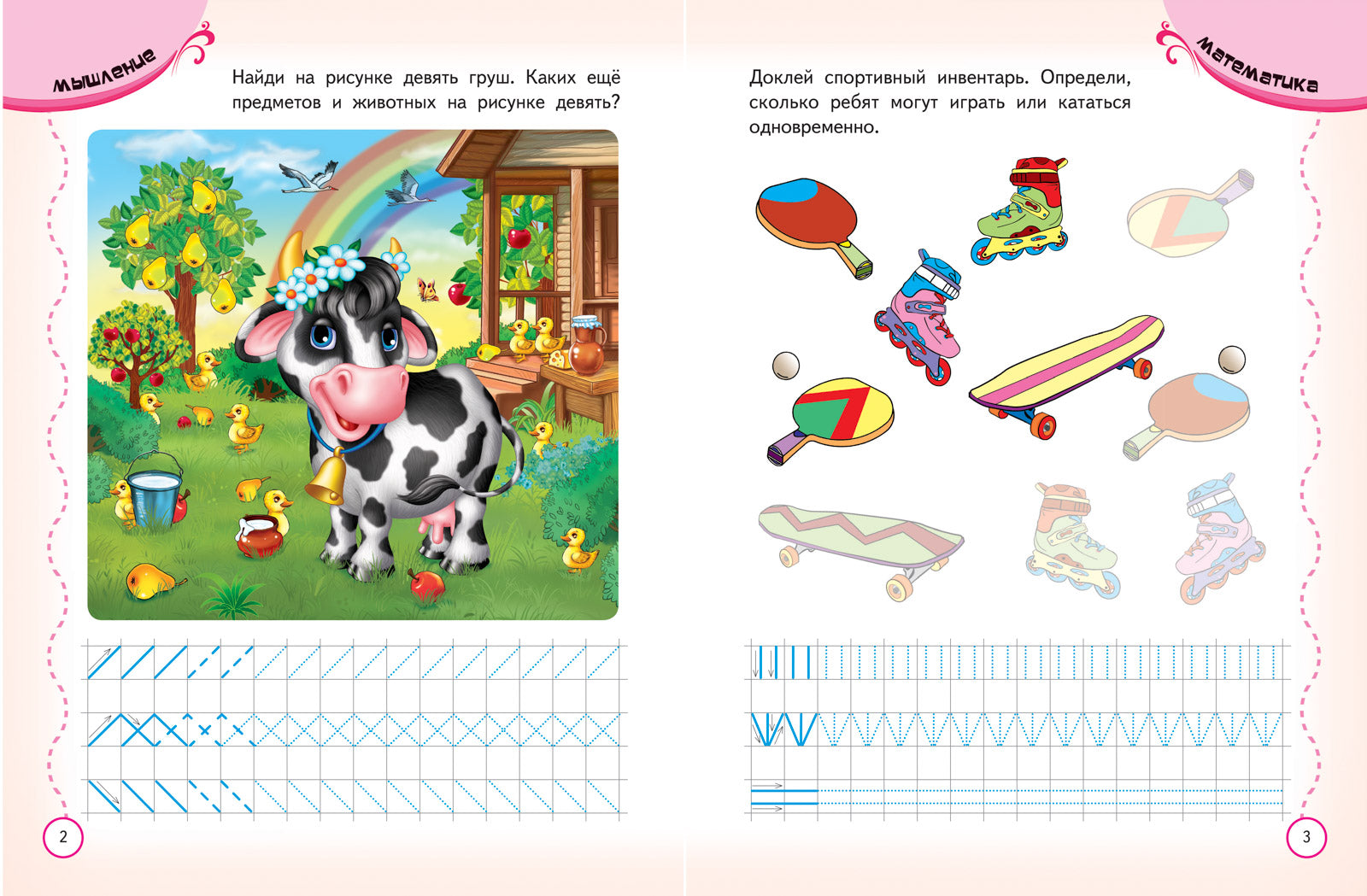 Занимаясь с этой книгой, малыш совместит приятное с полезным: кроме того, что задания в книге служат для оценки уровня его развития, они очень интересные и увлекательные. Также на страницах книги ребёнка ждут упражнения на отработку навыков письма. Здесь он будет рисовать, считать, учиться концентрироваться на задании и находить отличия, клеить наклейки и многое другое! Все задания в книге подобраны в соответствии с возрастом ребёнка.