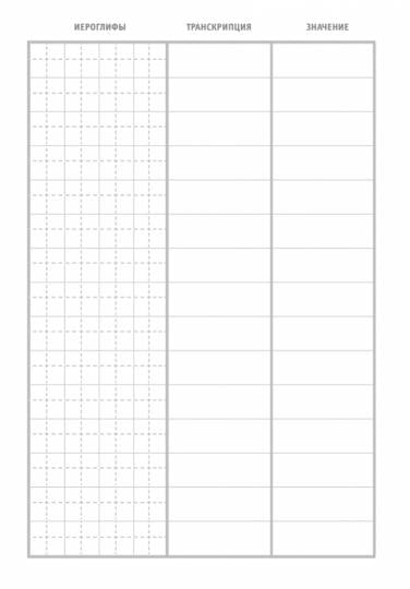 Handling time: 34 days Тематическая тетрадь для записи иероглифов станет хорошим подспорьем в изучении китайского, японского или корейского языка. В тетради уже очерчены поля для иероглифов, их транскрипции и перевода.