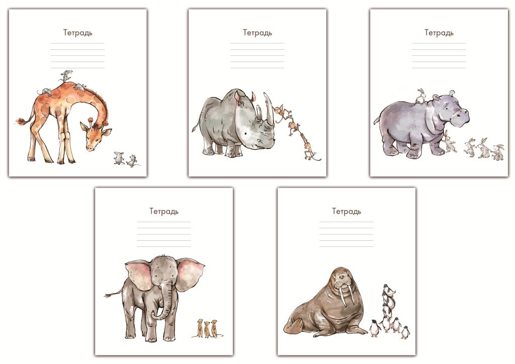 Тетрадь 24л,линия,ЖИВОТНЫЕ,5видов,42920-25