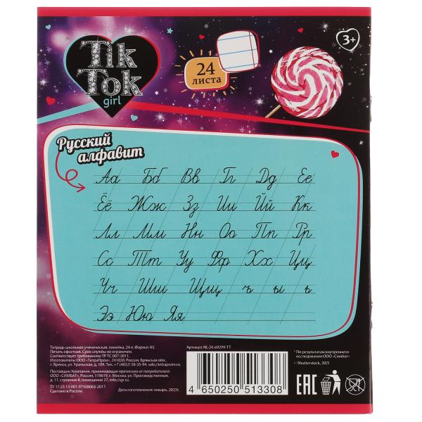 Тетрадь, 24 листа, линейка, диз 1, TIK TOK GIRL в кор.160шт