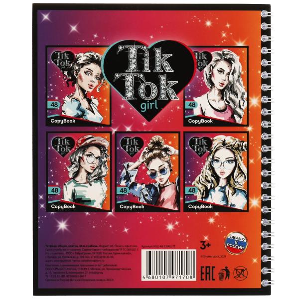 Тетрадь, 48 листов, гребень, диз 4, TIK TOK GIRL в кор.80шт
