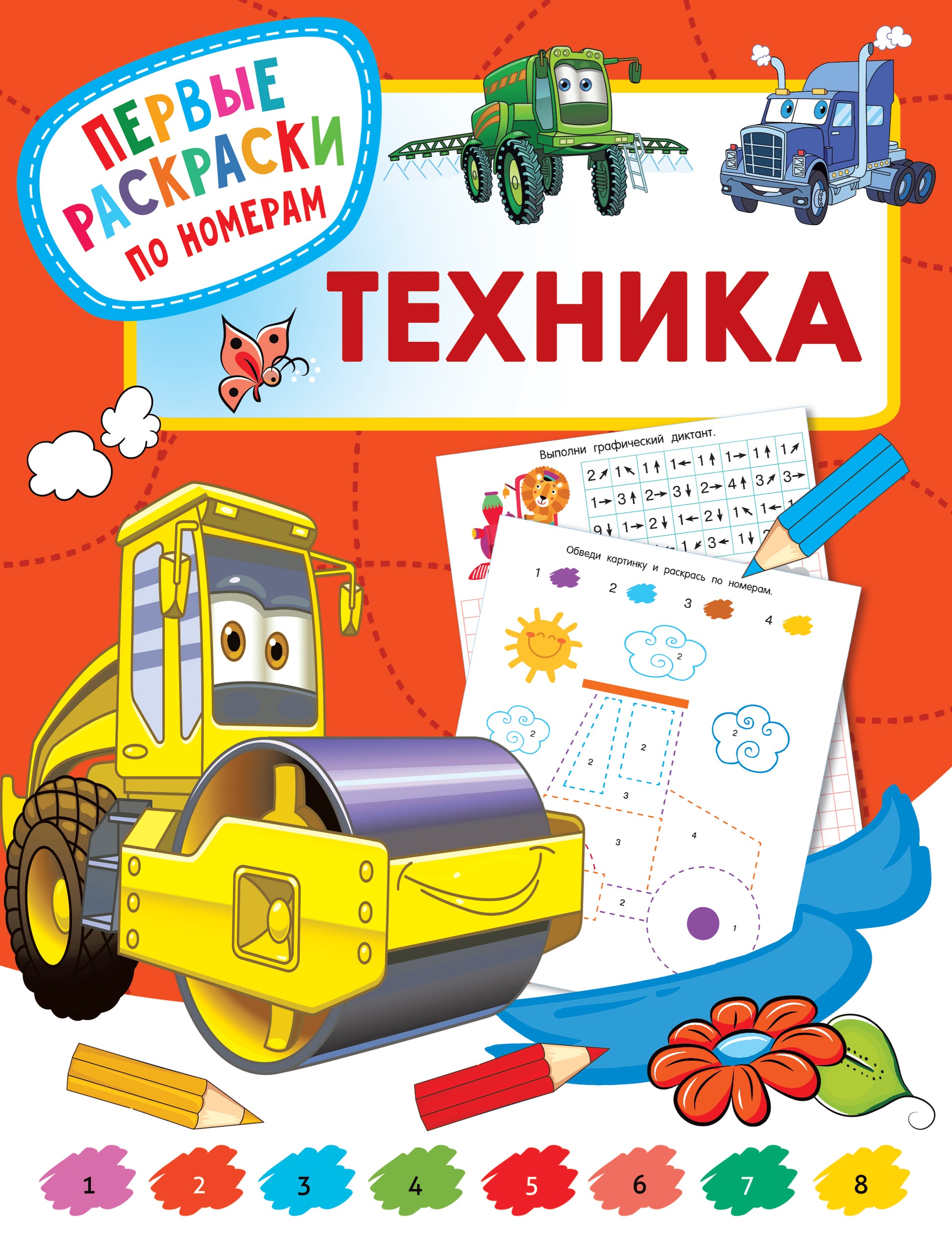 "Техника" - замечательная развивающая раскраска. Любознательным малышам обязательно понравится красочная коллекция головоломок и зашифрованных картинок. Предложите ребёнку раскрашивать картинки с числами и примерами на сложение и вычитание, выполнять графические диктанты, решать логические задачки - такие интеллектуальные занятия помогают выучить счёт до 10, расширяют кругозор и словарный запас, формируют графические навыки, развивают мышление, память, внимание, наблюдательность, смекалку и творческие способности. На каждой странице классные картинки автомобильной техники и интересные задания - ребёнок сможет заниматься самостоятельно и с удовольствием.Для дошкольного возраста.Составитель: Дмитриева В.Г.О чем эта книгаНовая увлекательная книжка в серии «Первые раскраски по номерам» — путешествие в мир арифметических раскрасок, логических задачек и графических диктантов.Кому эта книга будет интереснаЭто книга веселых интеллектуальных игр для настоящих умников и умниц.Каковы особенности этой книги• Раскрашивание картинок по номерам — прекрасное занятие для развития мелкой моторики, наблюдательности, смекалки и знакомства с цифрами.• Ребенок будет раскрашивать картинки с числами и примерами на сложение и вычитание — и получит навыки счета от 1 до 10.• Выполняя графические диктанты, дошкольники учатся ориентироваться на листе бумаги, осваивают понятия «вверх», «вниз», «влево», «вправо».• Простые и интересные задания тренируют графические навыки, развивают образное мышление и воображение, сообразительность и логику.• Книжка помогает раскрыть творческий потенциал ребенка, дарит ему множество положительных эмоций.Раскрашиваем картинки с числами и примерами,развиваем логику, внимание,осваиваем счет до 10!