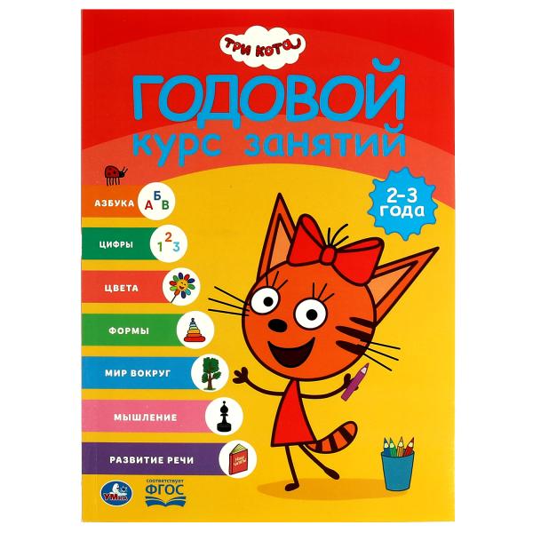 Три кота . Годовой курс занятий. 2-3 года. 205Х280ММ, 96 стр. Умка в кор.15шт
