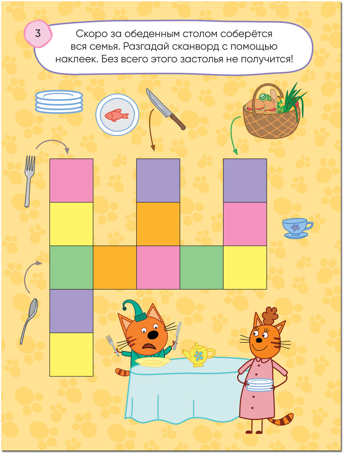 В гостях у котят (Три кота. 100 наклеек. Игры с буквами) Коржик, Компот и Карамелька приглашают в гости: это отличная возможность побывать в доме котят. А потом можно и к их друзьям заглянуть! В книге «В гостях у котят» из серии «Три кота. 100 наклеек. Игры с буквами» собраны увлекательные головоломки — сканворды, ребусы, лабиринты и другие игры с буквами, которые помогут потренировать мышление, память и мелкую моторику. Единственное, что понадобится ребенку — это наклейки, которых в книге больше 100! А на последней странице можно найти ответы...