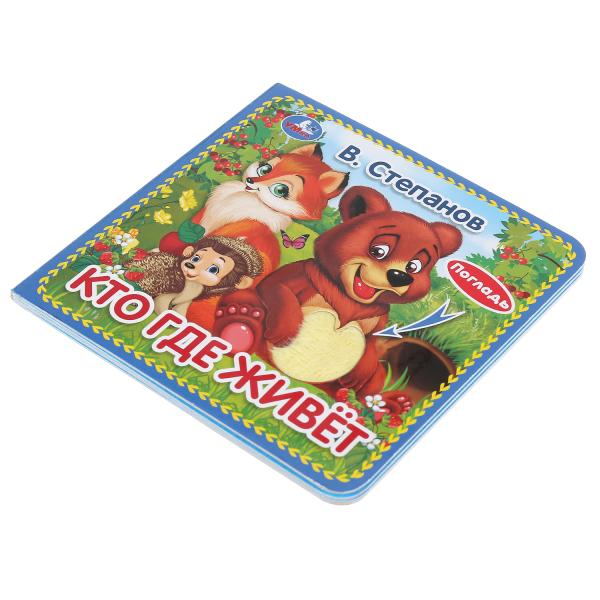 Умка. Кто где живёт. В.Степанов (карт. книжка с тактилом). 3 разворота. 4 такт. элемента. 120х120мм