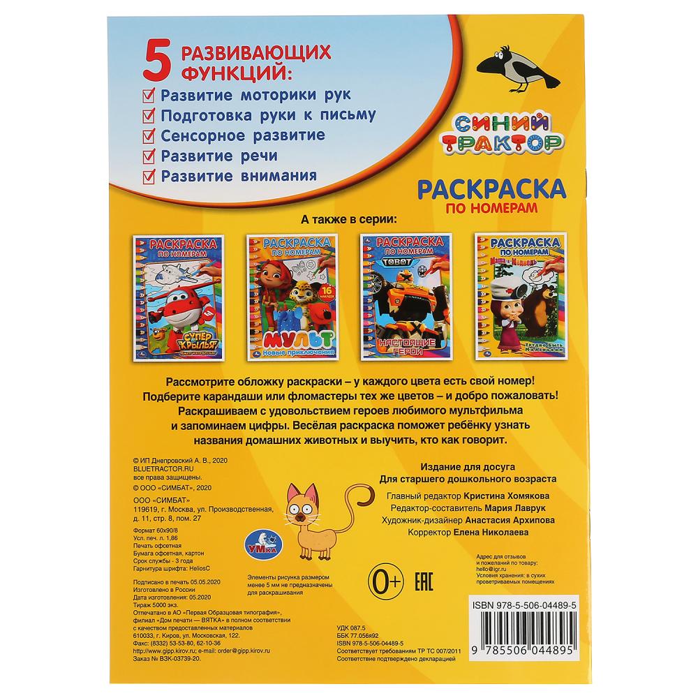 "УМКА". СИНИЙ ТРАКТОР (РАСКРАСКА ПО НОМЕРАМ А4). ФОРМАТ: 214Х290 ММ. ОБЪЕМ: 16 СТР. в кор.50шт