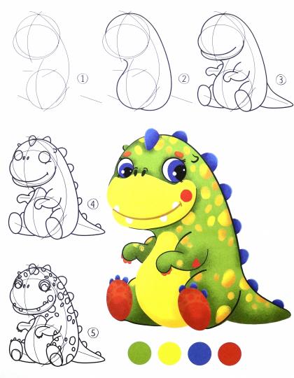 УЧИМСЯ РИСОВАТЬ. ШАГ ЗА ШАГОМ. ДИНОЗАВРИКИ