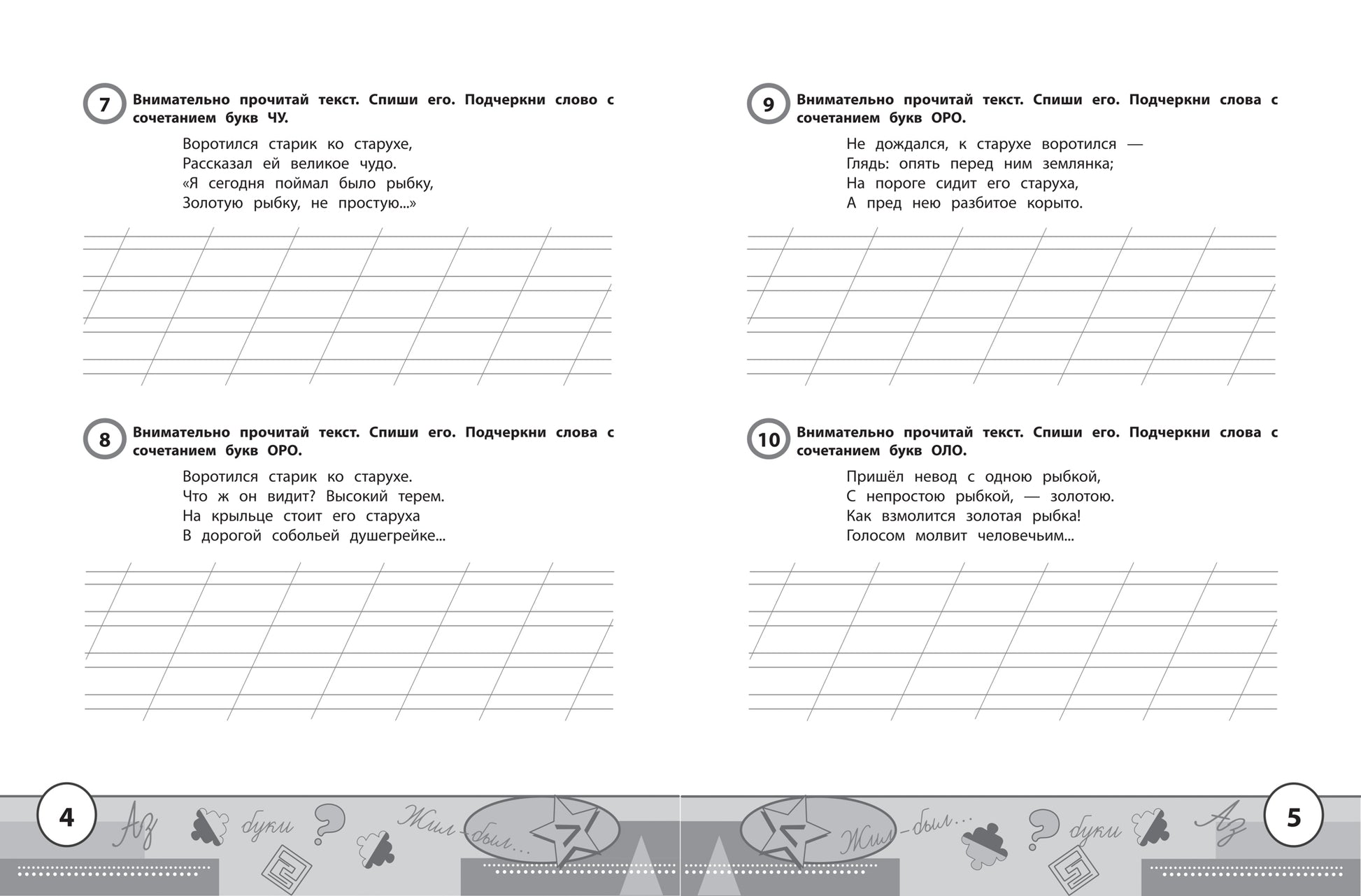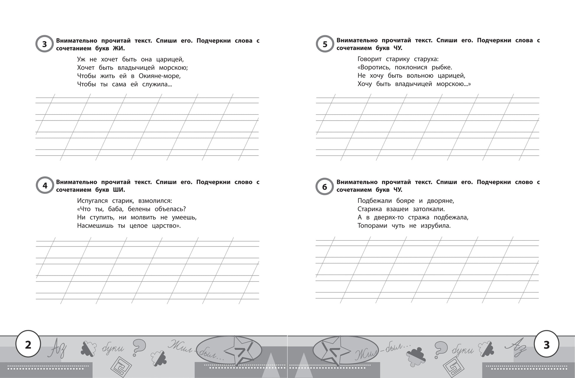 Цель пособия - формирование у детей орфографической зоркости, отработка навыка каллиграфического письма, закрепление правил русского языка. В пособии для списывания предлагаются фрагменты сказок А. С. Пушкина "Сказка о рыбаке и рыбке" и "Сказка о царе Салтане, о сыне его славном и могучем богатыре князе Гвидоне Салтановиче и о прекрасной царевне Лебеди". Каждый фрагмент сопровождается дополнительными орфографическими и грамматическими заданиями.