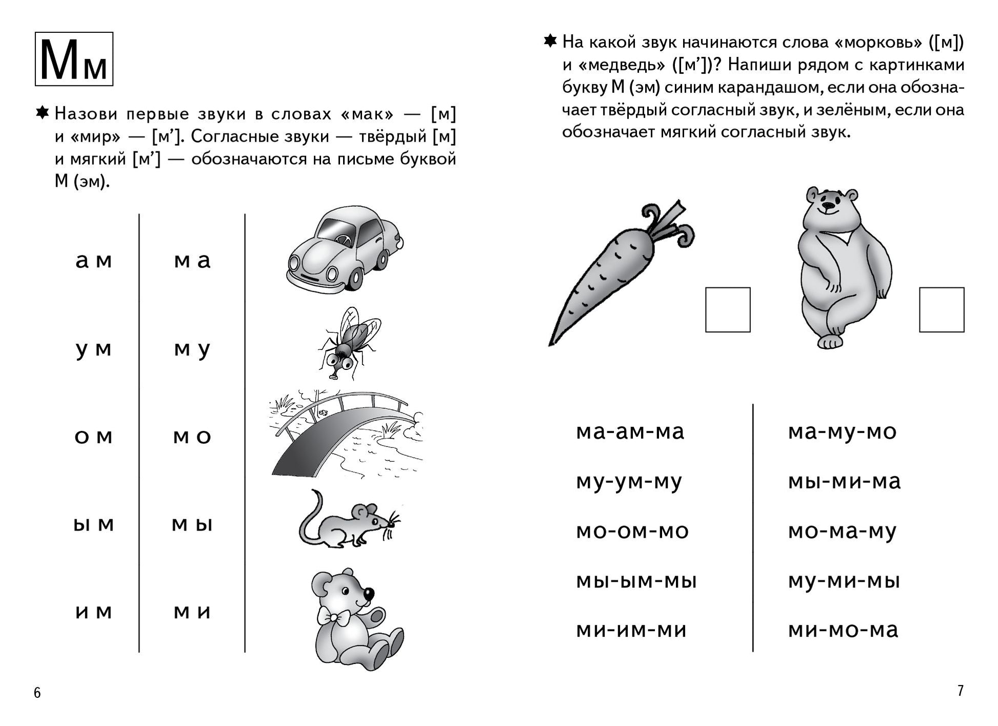 Уважаемые родители и педагоги! Вашему вниманию предлагается тетрадь, состоящая из 2 частей, которая поможет Вашему ребенку научиться читать. Уникальность этой тетради в том, что по ней могут заниматься как те дети, которые уже знают буквы, так и те, кто еще только знакомится с ними. Чтобы процесс обучения чтению не вызывал затруднений, необходимо называть букву не алфавитным названием ("бэ", "вэ" и т.д.), а звуками, которые она обозначает. Помогите ребенку научиться различать понятия "звук" и "буква". Звуки мы произносим и слышим, а буквы - это графические значки, обозначение звуков на письме. Буквы мы видим и пишем. Для слитного слогового чтения важным этапом является запоминание слогов-слияний (согласный+гласный). Для более образного запоминания слогов-слияний в первой части тетради рядом с каждым слогом выполнен рисунок. Когда алгоритм сливания звуков в один слог уже выработан, опорные рисунки становятся ненужными, поэтому во второй части тетради таких рисунков нет. Тетрадь рассчитана на совместную работу взрослых и детей. Она может быть использована в детских дошкольных учреждениях.