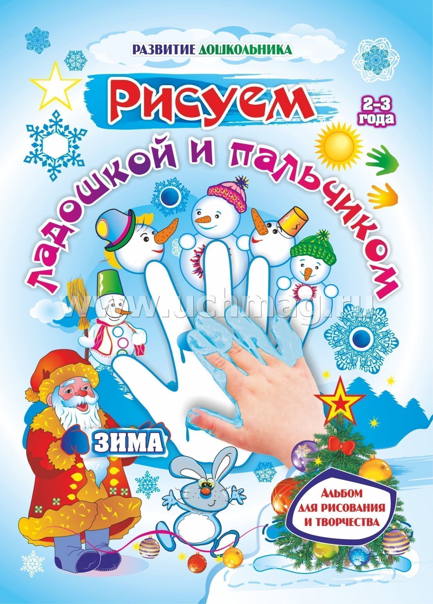 ФГОС ДО Рисуем ладошкой и пальчиком. Альбом для рисования и творчествадетей 2-3 лет. Зима. 16 стр.