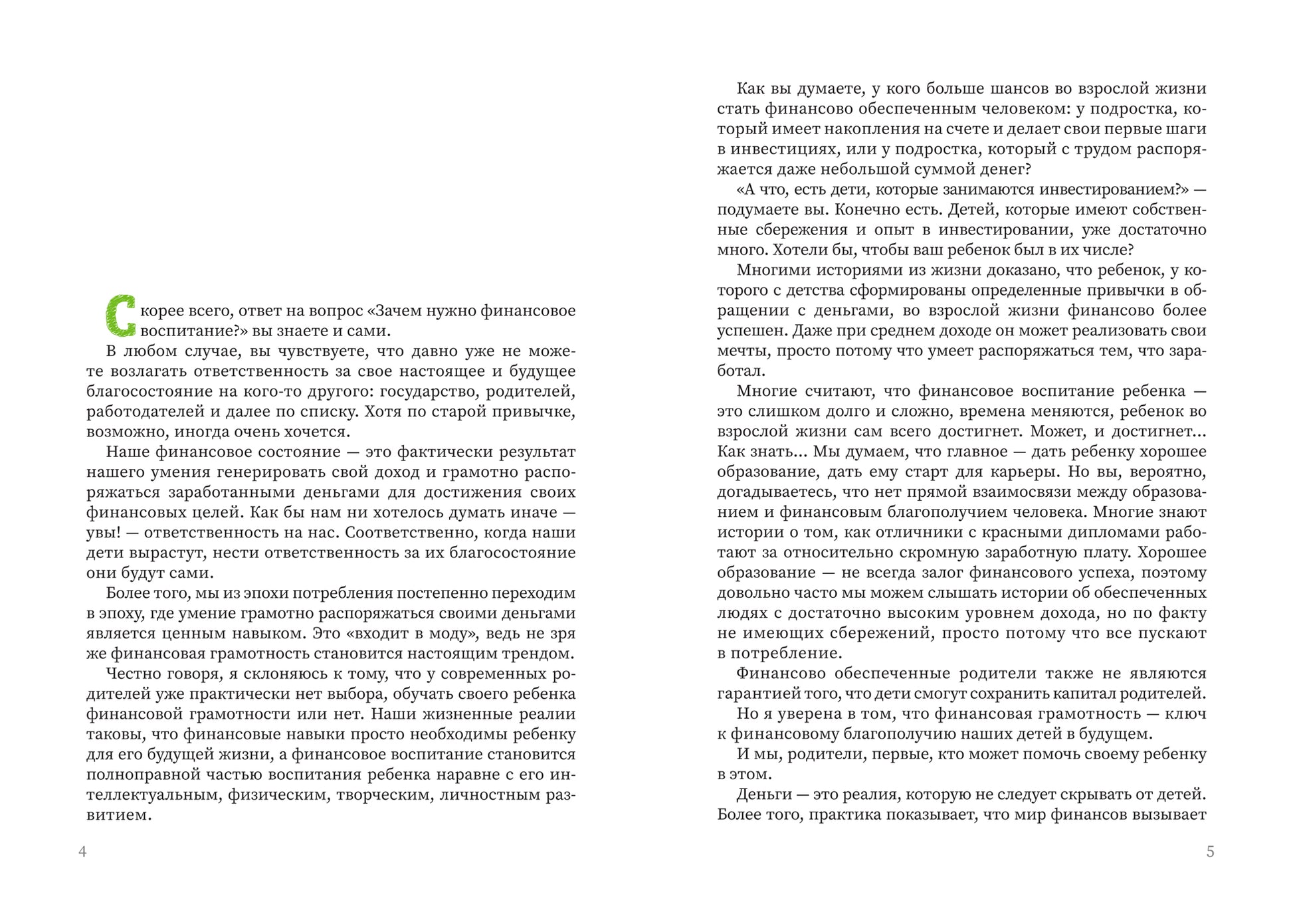 Эта книга - практикум для родителей, которые желают своему ребёнку финансового благополучия в его взрослой жизни. Из книги вы узнаете, как внутри семьи можно научить ребёнка ценить деньги и грамотно ими распоряжаться, как процесс накопления денег сделать интересным и увлекательным для ребёнка, как и какие финансовые привычки формировать, как развивать необходимые финансовые навыки. В книге родитель найдёт не только обсуждение темы, но и практические задания, игры для ребёнка, рекомендации по использованию в финансовом воспитании материалов, доступных каждому.