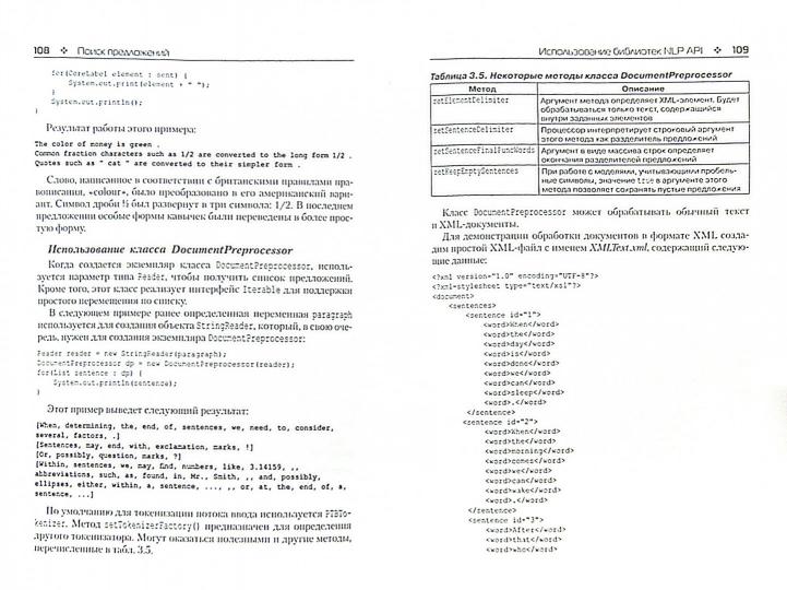 Handling time: 19 days Применение различных практических методик для систематизации и извлечения полезной текстовой информации из неструктурированных данных с использованием языка программирования JavaОбработка естественного языка (Natural Language Procession - NLP) представляет собой важную область разработки прикладного ПО и, с учётом современных задач ИТ, в будущем эта важность будет только возрастать. Уже сейчас наблюдается рост потребности в приложениях, работающих с естественными языками на основе NLP-методик.В книге "Использование Java для обработки естественного языка" рассматриваются способы организации автоматической обработки текста с применением таких методик, как полнотекстовый поиск, правильное распознавание имён, кластеризация, извлечение информации и составление аннотаций. Концепции обработки естественного языка излагаются таким образом, что даже читатели, не обладающие знаниями об этой технологии и о методах статистического анализа, смогут понять их.Если вы программируете на языке Java и хотите узнать о решениях элементарных задач, составляющих основу обработки естественного языка, то эта книга для вас. Вы научитесь выбирать и практически применять базовые методики обработки естественного языка для выполнения многих элементарных задач, а также включать их в реальные приложения, решающих более сложные, комплексные задачи. Читатель должен обладать некоторым опытом разработки программ на языке Java.Эта книга поможет:глубоко понять сущность основных задач обработки естественного языка и их взаимосвязи друг с другом;изучить и практически использовать доступные механизмы токенизации;реализовать методики определения границ предложений;освоить применение специальных методик поиска имён людей и прочих именованных объектов в документе;реализовать решения для определения морфологической разметки приложений;научиться использовать синтаксические анализаторы для определения взаимосвязей между элементами документа;объединить элементарные задачи в эффективную цепочку, способную решать более сложные и объёмные задачи обработки естественного языка.