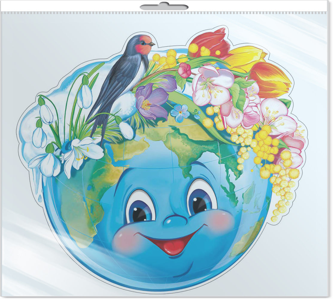 *Ф-14341 ПЛАКАТ ВЫРУБНОЙ А3 В ПЛАКАТЕ. Глобус весенний (УФ-лак, в индивидуальной упаковке, с европодвесом и клеевым клапаном)